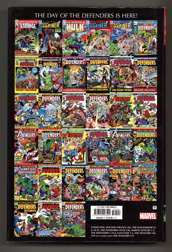 Volume 1 - 1st printing. Collects Doctor Strange (1968 1st Series) #183, Sub-Mariner (1968-1974 1st Series) #22 and 34-35, The Incredible Hulk (1962-1999 1st Series) #126, Marvel Feature (1971-1973 1st Series) #1-3, The Defenders (1972-1986 1st Series) #1-19, Giant Size Defenders (1974) #1-2, and The Avengers (1963-1996 1st Series) #115 (B STORY) and #116-118.