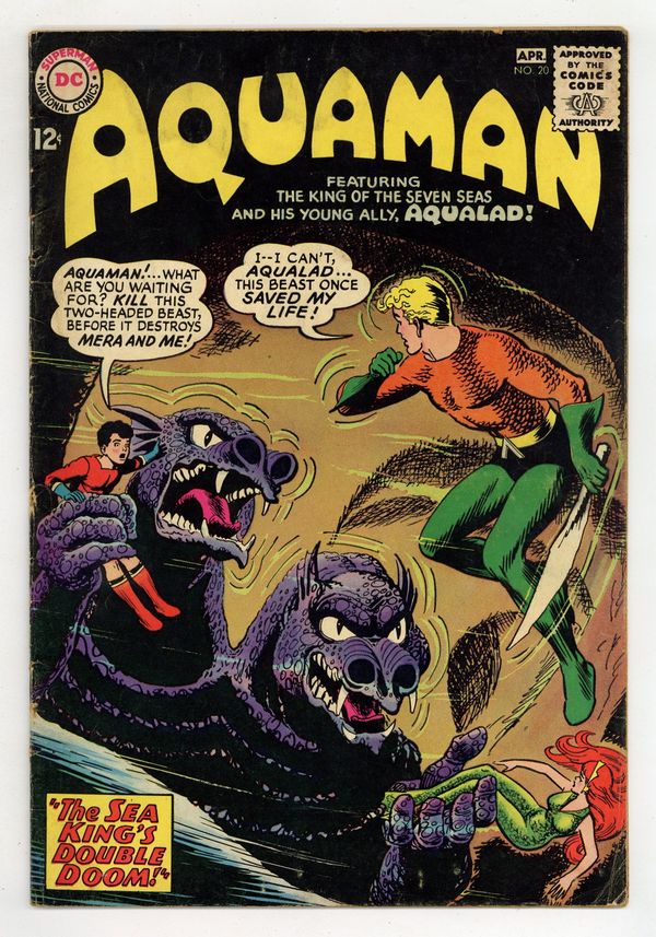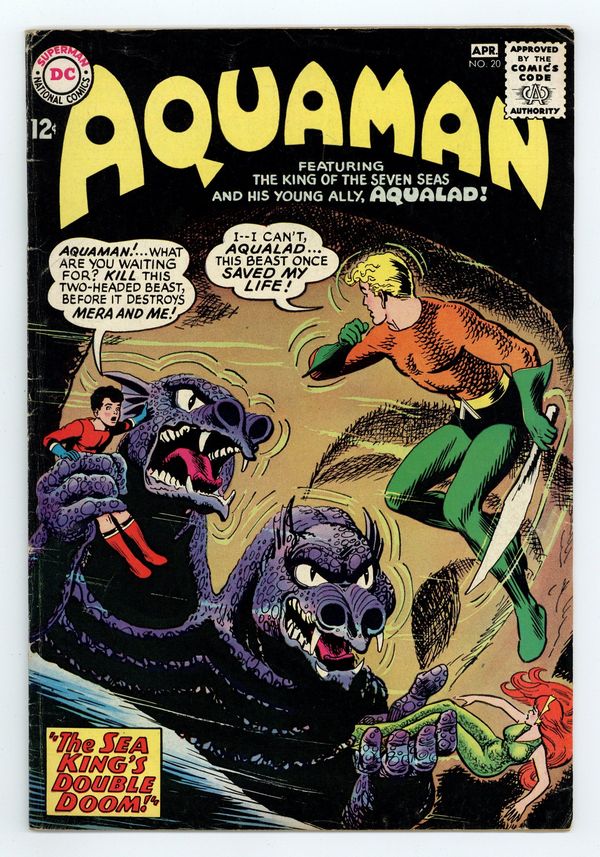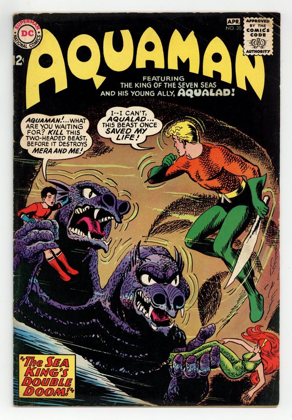 $21.00Cover art by Nick Cardy. The Sea King's Double Doom starring Aquaman, Aqualad, Mera, Sea Imp (intro), Kaltor, Luknan, and Starene, art by Nick Cardy; Aquaman follows an undersea creature who has taken an Atlantean prisoner. Chief Hot Foot humor half-page by Henry Boltinoff. They're Real, Live Fish! fact page. 36 pgs. $0.12. Cover price $0.12.