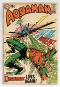 Cover art by Nick Cardy. Can This Be Death?.. The City on the Edge of Nowhere, script by Steve Skeates, art by Jim Aparo; Aquaman and Atlantis return to Atlantis and find Mera talking with the Ocean Master; Aquaman gets shot by an alien. Deadman Rides Again! starring Deadman [Boston Brand], Taj Ze, Rama, and Ocean Master, script and art by Neal Adams; Deadman makes an attempt to possess Ocean Master. 36 pgs. $0.15. Cover price $0.15.