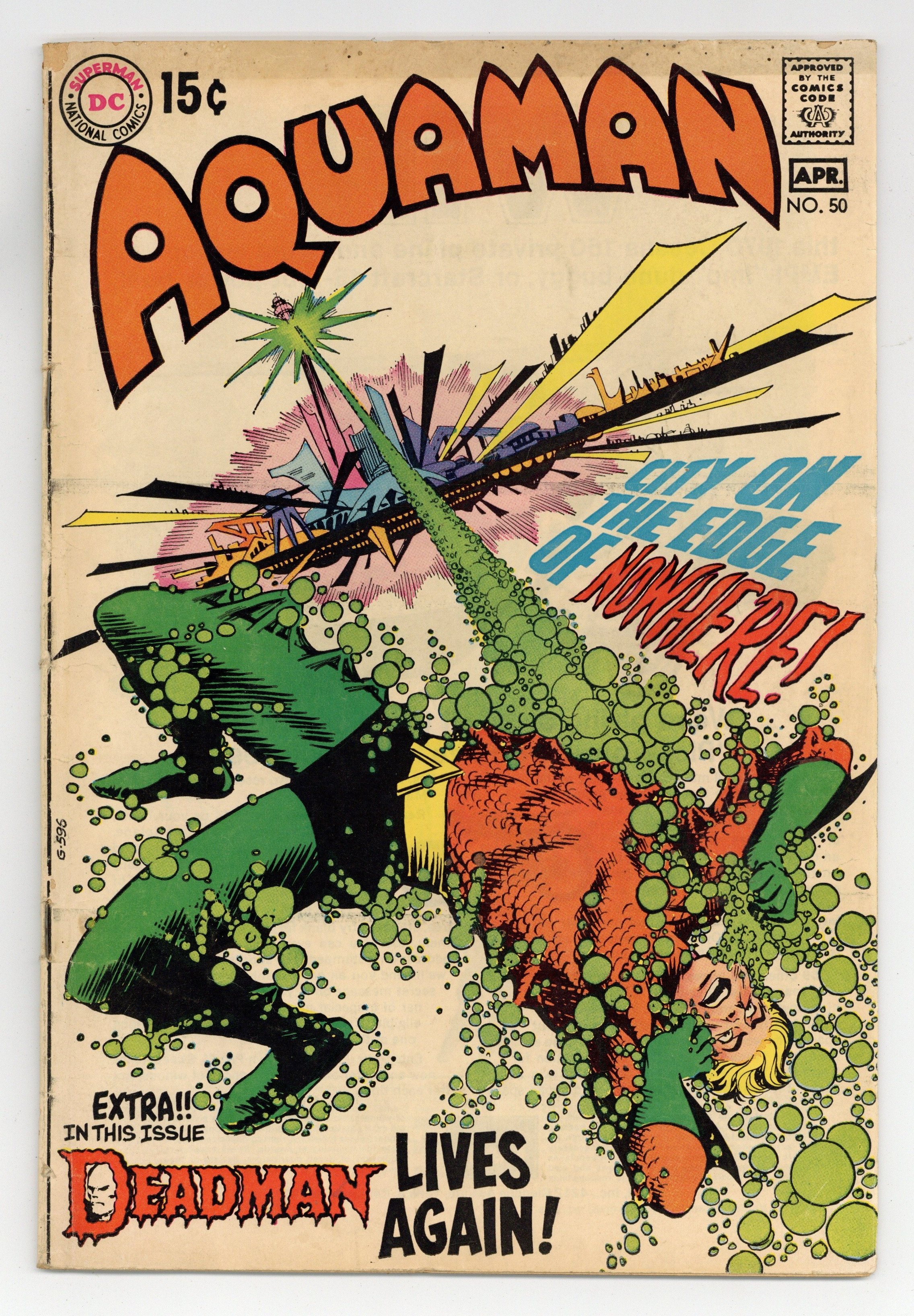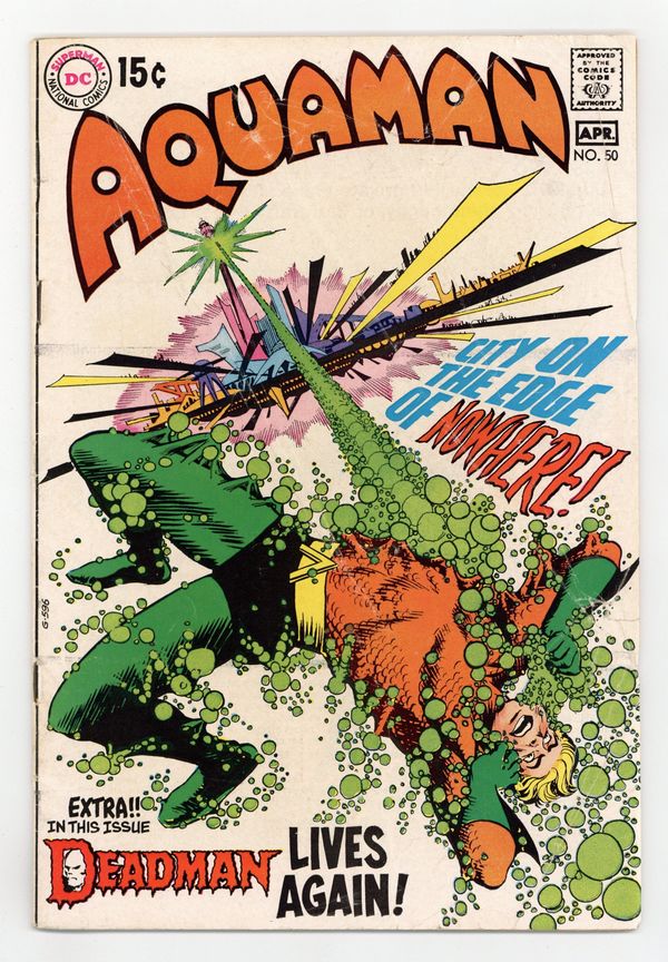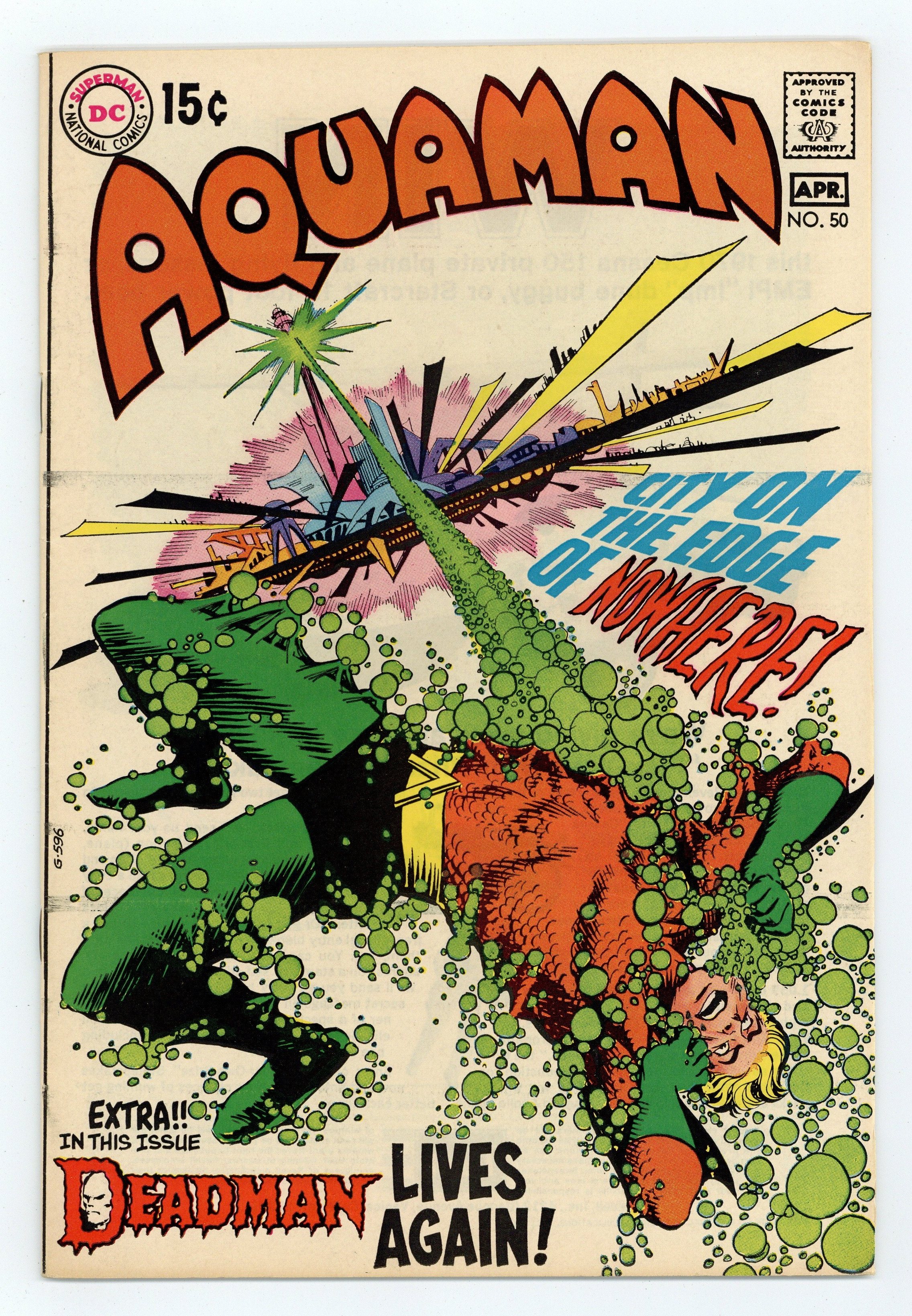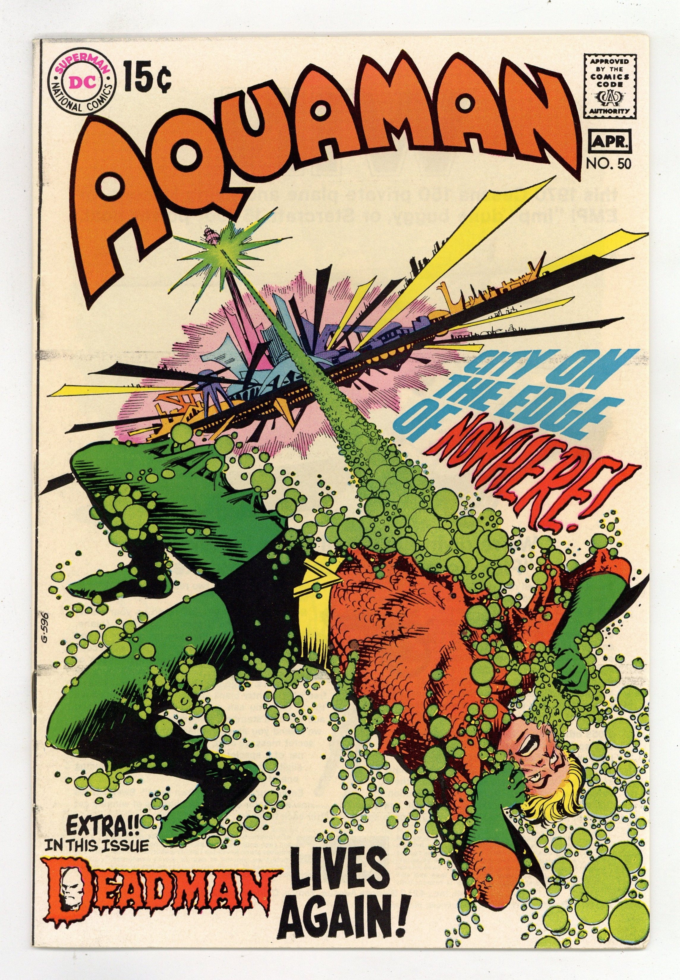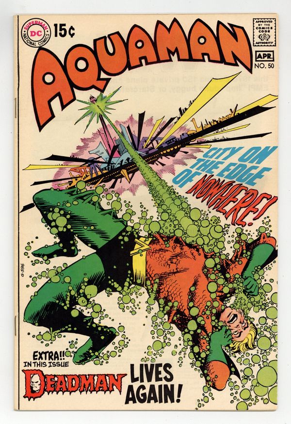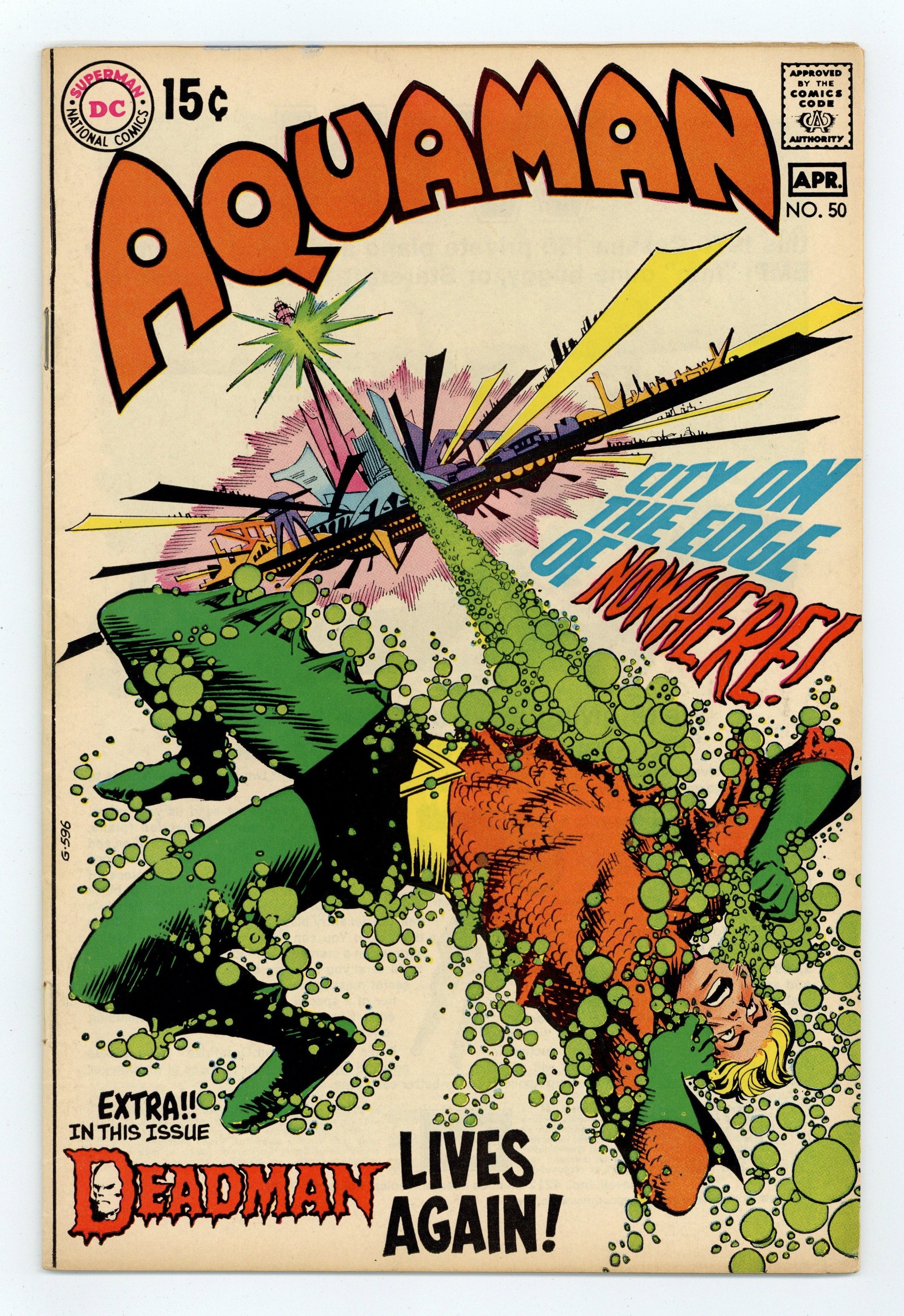 $18.25Cover art by Nick Cardy. Can This Be Death?.. The City on the Edge of Nowhere, script by Steve Skeates, art by Jim Aparo; Aquaman and Atlantis return to Atlantis and find Mera talking with the Ocean Master; Aquaman gets shot by an alien. Deadman Rides Again! starring Deadman [Boston Brand], Taj Ze, Rama, and Ocean Master, script and art by Neal Adams; Deadman makes an attempt to possess Ocean Master. 36 pgs. $0.15. Cover price $0.15.