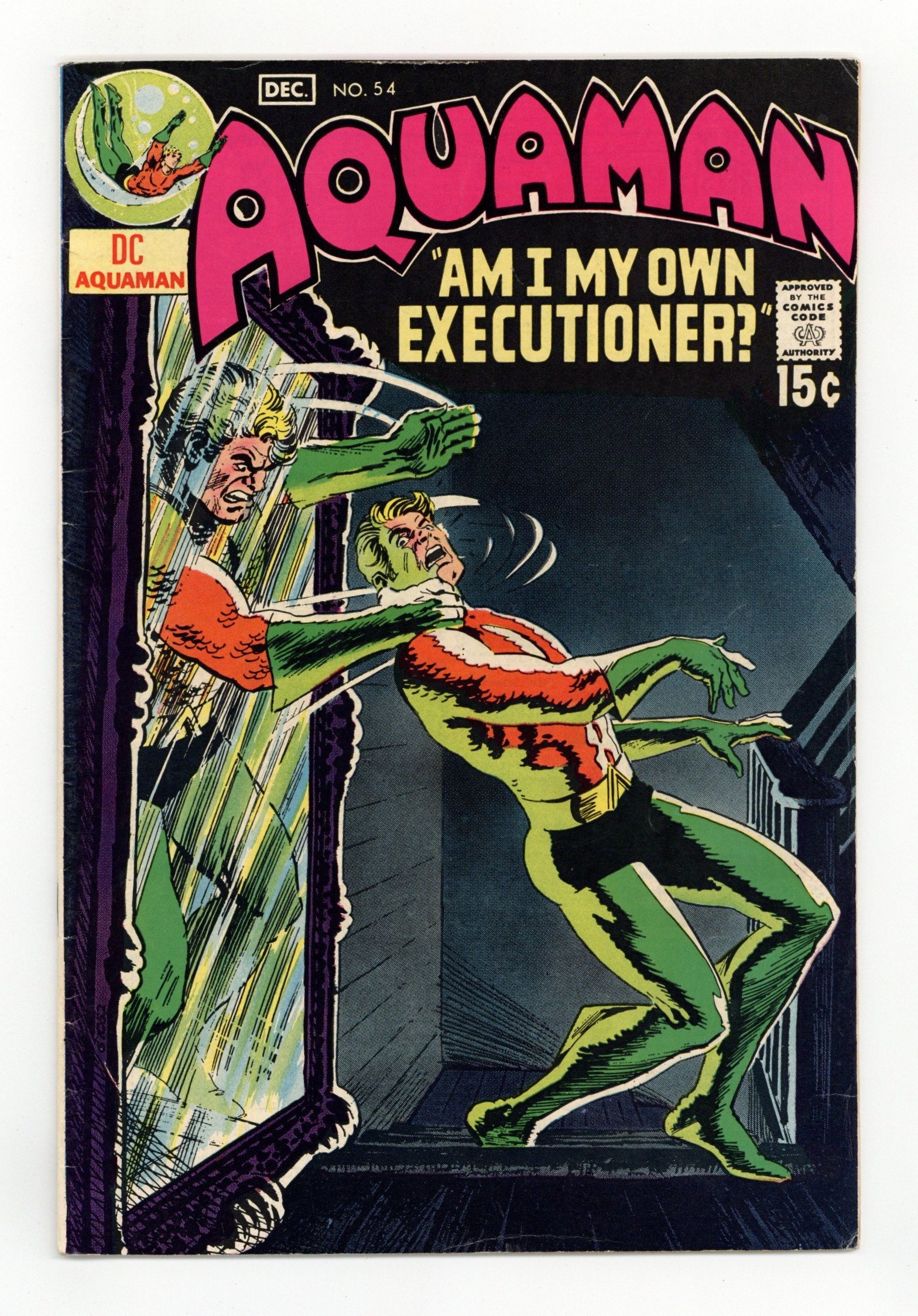 Cover art by Nick Cardy. Crime Wave!, script by Steve Skeates, art by Jim Aparo; prominent citizens of Atlantis, who are brainwashed, rob stores; Aquaman wakes up in a haunted house and later defeats Thanatos. The A-B-Seas of Skin Diving! fact two-pager, script by Robert Kanigher, pencils by Ross Andru, inks by Mike Esposito. 36 pgs. $0.15. Cover price $0.15.