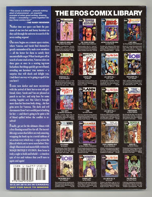 Published Nov 1996 by Eros Comix.$50.001st Printing - Book 26: Beta Sexus. Softcover, 8" x 10", 114 pages, B&W. -MATURE READERS- Cover price $14.95.