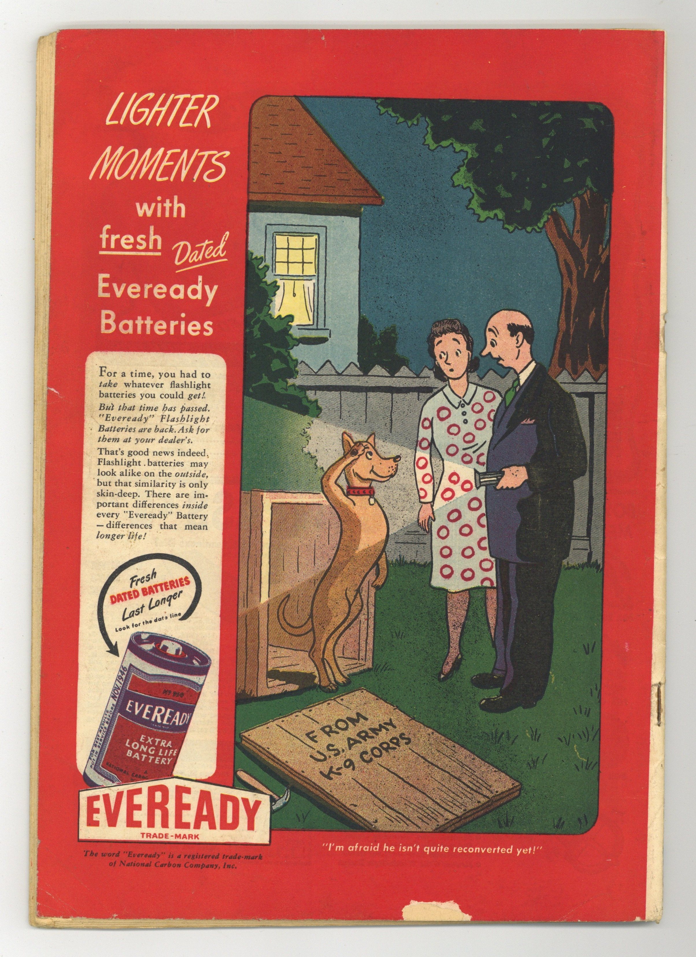 Cover by Dick Sprang. "Nine Lives has the Catwoman!", script by Bill Finger, pencils by Bob Kane, inks by Ray Burnley; Catwoman arrives at the state women's prison and uses her catseye on her guard to make her escape; However, when she returns to her digs and attempts to put her gang back together, most want no part of her since Batman always defeats her. "Dinosaur Island!", script by Bill Finger, pencils by Paul Cooper, inks by Ray Burnley; Batman and Robin are challenged to a game of "Touch Hunt" on famed Dinosaur Island in return for a gift to charity in the amount of $5000. "Storm Incident" text story by Stan Carter. 2-page The Rascals story by Phil Berube. "Dick Grayson, Author!", pencils by Dick Sprang (layouts) and Paul Cooper, inks by Ray Burnley; Dick, interested in comic magazines, accompanies Bruce to the offices of the editor of Crescent Comics, and is invited to write a script; However, ideas do not come easy and is superseded by a case involving ex-con Big Ed Conroy. 52 Pages, Full Color. Cover price $0.10.