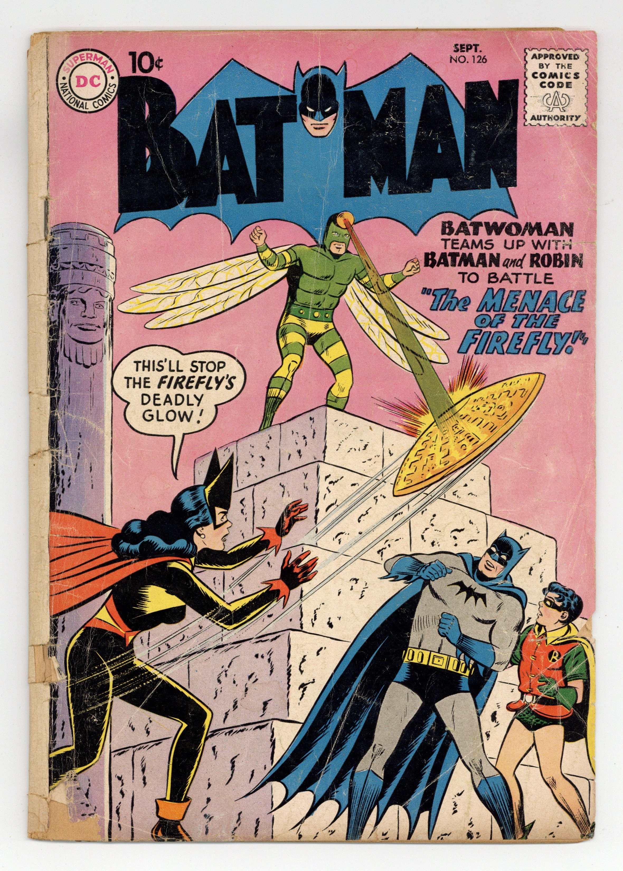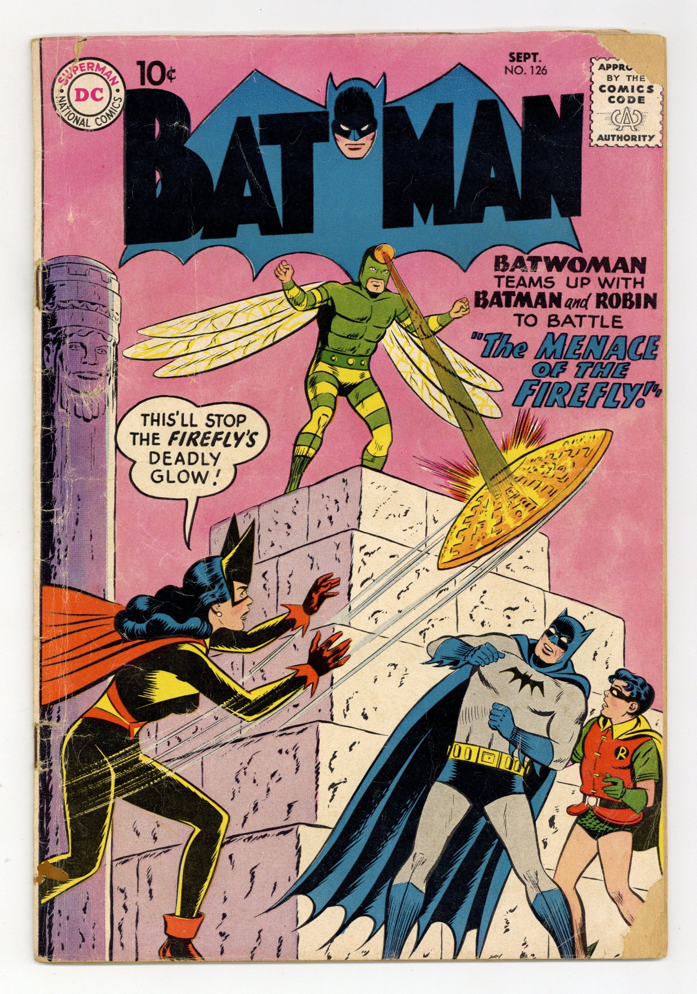 Cover pencils by Curt Swan, inks by Stan Kaye. "The Mystery of the 49th Star," script by Bill Finger, pencils by Sheldon Moldoff, inks by Charles Paris; Batman is called to Alaska to recover 49 diamonds stolen from a rich tycoon. 2/3-page Casey the Cop story by Henry Boltinoff. Water: A Good Friend or Deadly Enemy -- Depending on You! public service announcement, art by Bernard Baily. "The Batman Lighthouse," script by Bill Finger, pencils by Sheldon Moldoff, inks by Charles Paris; While on patrol, the Caped Crusaders spot a signal given them by the lighthouse keeper, and the duo swing in to stop some foreign agents and a gang boss. "The Menace of the Firefly," script by Bill Finger, pencils by Sheldon Moldoff, inks by Charles Paris; While Bruce, Dick and Kathy attend a party, a mysterious criminal appears and robs everyone. When the Caped Crusader appears on the scene, Kathy suspects the host, Ted Carson, of being Batman...but she is due for a surprise! Letters column begins. 36 Pages, Full Color. Cover price $0.10.