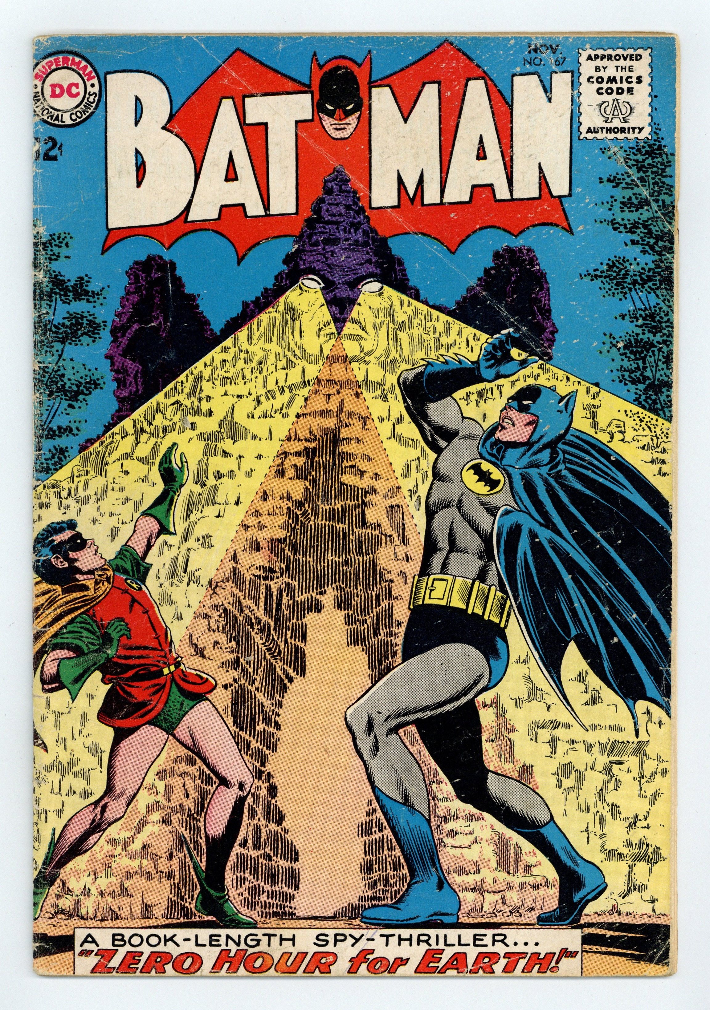 Cover pencils by Carmine Infantino, inks by Murphy Anderson. "Zero Hour for Earth!", script by Bill Finger, pencils by Sheldon Moldoff (as Bob Kane), inks by Joe Giella; A dying Interpol man informs Batman that a criminal named Karabi has plans to instigate a nuclear war. Half-page filler about the component parts of the nucleus of an atom. 2/3-page Strange Laws humor/non-fiction feature by Henry Boltinoff. Rocky and Bullwinkle star in a one-page Cheerios ad. 36 Pages, Full Color. Cover price $0.12.