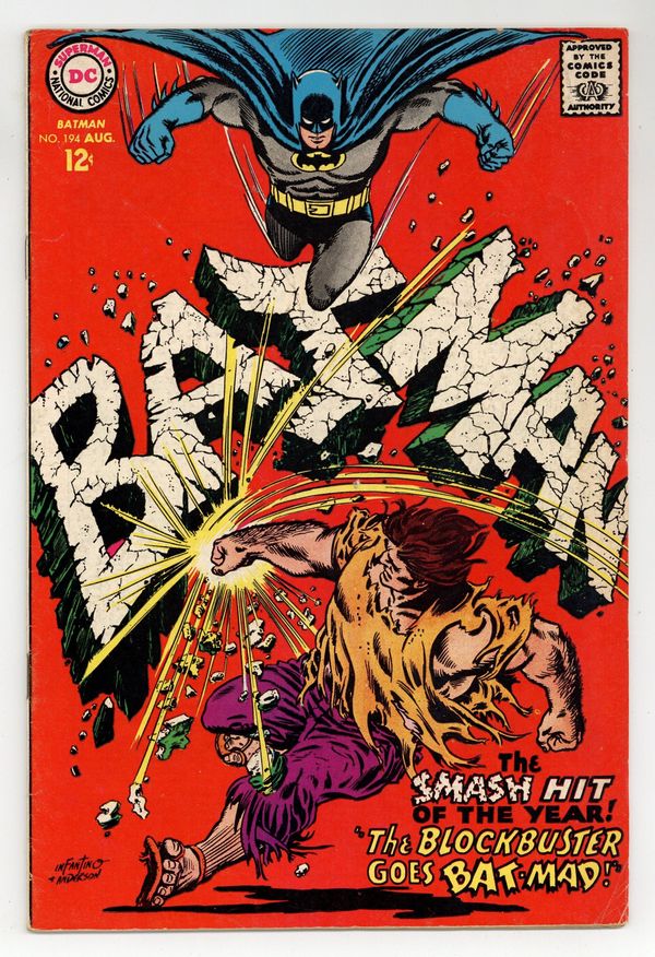 Ends Mar 2 7:28 PM CST Bid History 9 bids Current Bid $48 Your Secret Max Bid If you'd like to bid, please log in or register. Cover pencils by Carmine Infantino, inks by Murphy Anderson. "The Blockbuster Goes Bat-Mad!", script by Gardner Fox, pencils by Chic Stone (?) and Sheldon Moldoff (?) (as Bob Kane), inks by Joe Giella; By chance, a reformed Mark Desmond sees a Batman display at a local department store and reverts back to his Blockbuster persona, which goes out to destroy anything related to the Caped Crusader. Letters to the editor from comics historian Peter Sanderson Jr. and "Batmania" publisher Biljo White. "The Problem of the Proxy Paintings!", script by Gardner Fox, pencils by Sheldon Moldoff (as Bob Kane), inks by Joe Giella; Martin Tellman calls the Analysts together to help him solve the dilemma he faces: his collection of worthless copies of valuable paintings have suddenly become the real thing! 36 Pages, Full Color. Cover price $0.12.