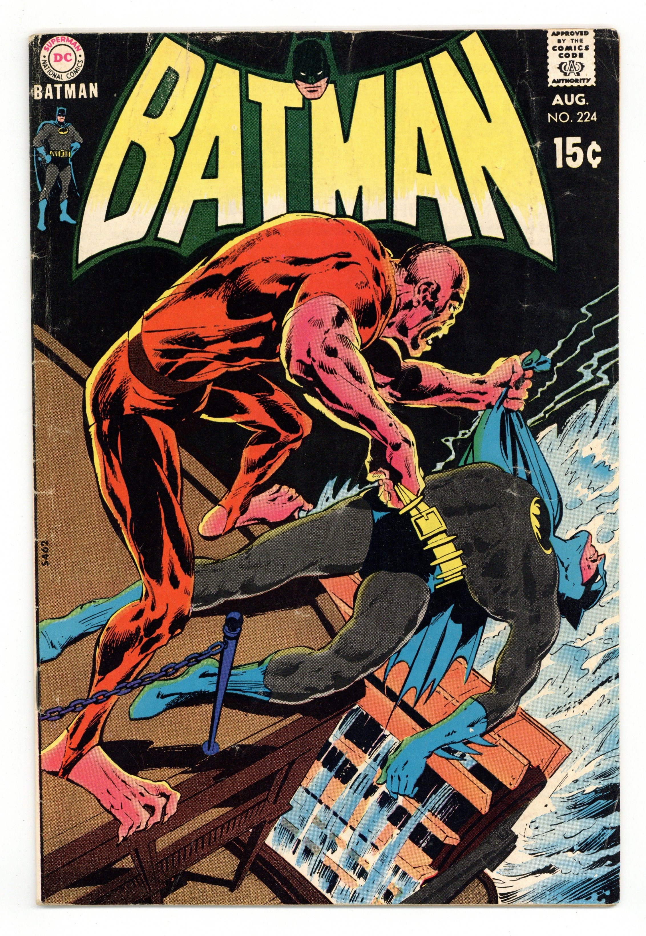 Cover pencils by Neal Adams, inks by Dick Giordano. "Carnival of the Cursed," script by Denny O'Neil, pencils by Irv Novick, inks by Dick Giordano; Investigating the murder of a jazz musician in New Orleans, Batman encounters the powerful Moloch and his gang, who are seeking the victim's trumpet for a hidden map to a gold mine; After Batman's first encounter against the beastly Moloch, he starts following the clues left by the thugs and he realizes that Moloch's gang has kidnapped one of the late musician's friends. Letter from comics writer Martin Pasko. 36 Pages, Full Color. Cover price $0.15.