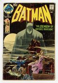 Cover art by Neal Adams. "The Demon of Gothos Mansion!", script by Denny O'Neil, pencils by Irv Novick, inks by Dick Giordano; Alfred receives a letter from his niece Daphne, saying she is a teacher to children at Gothos Mansion but thinks there is something strange; Batman decides to investigate and once he arrives at the place, he is attacked by some men, but easily defeats them; He then gets into Daphne's room, where she tells him she has discovered the children were Dwarves and she is forced to wear ancient clothes; On the wall there's a portrait of a girl who looks exactly like Daphne; Batman breaks the lock and opens the door of the room in order to leaves the room; However, he steps outside the room into a hallway and he falls through a trapdoor into a net; The Elder Heathrow and his men bind Batman's hands and he is placed on a stone with a noose round his neck; In about a quarter of an hour it will drop into the cellar and Batman will be hanged. One-page Casey the Cop story by Henry Boltinoff. "Help Me--I Think I'm Dead!", script by Mike Friedrich, pencils by Irv Novick, inks by Mike Esposito; Professor "Buck" Stuart is running for congress against incumbent Forte on a platform of cleaning up the polluted river that Forte has allowed ICM to dump their chemicals into; When Stuart's campaign headquarters are burned to the ground, Robin investigates. 36 Pages, Full Color. Cover price $0.15.