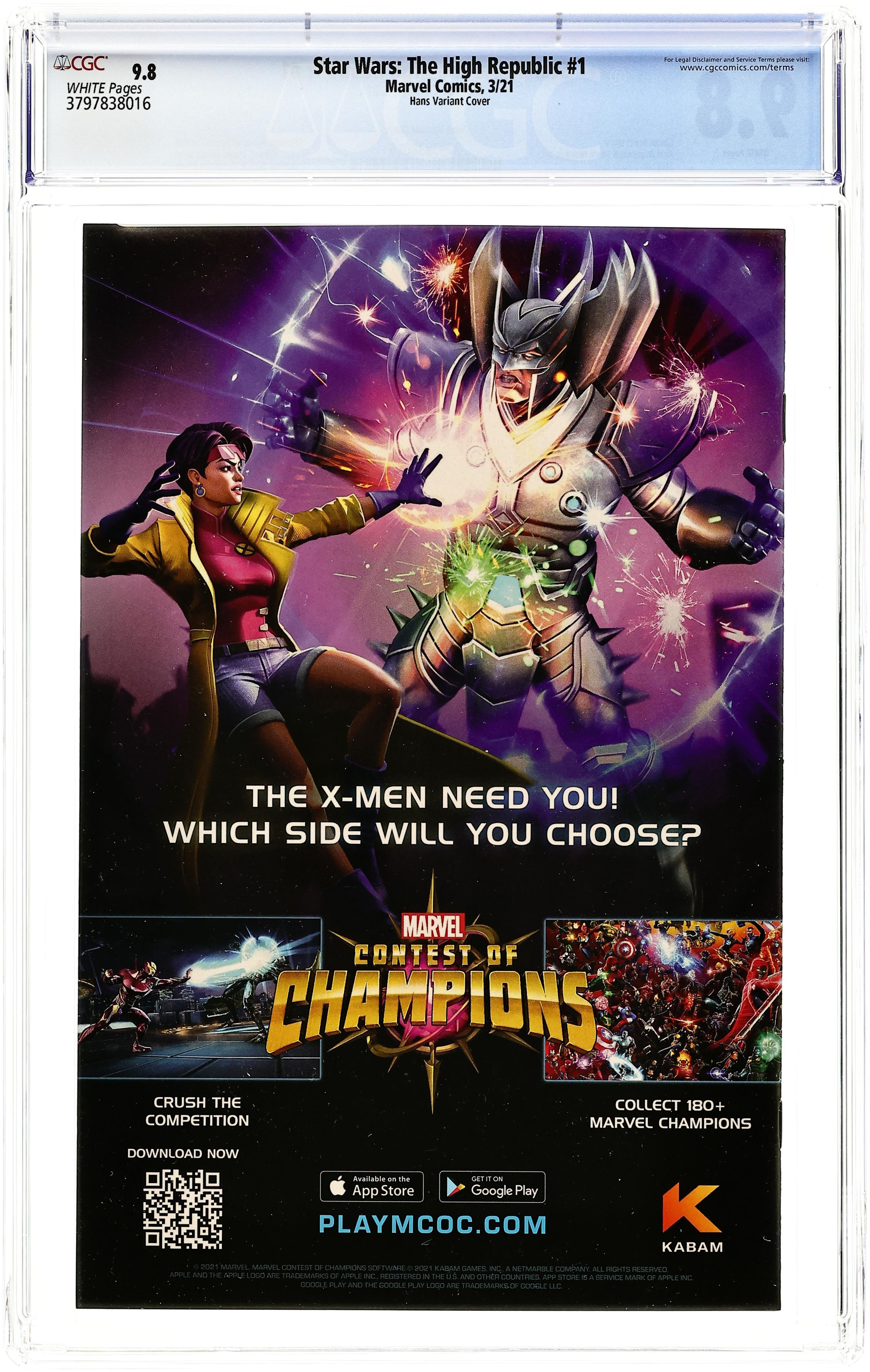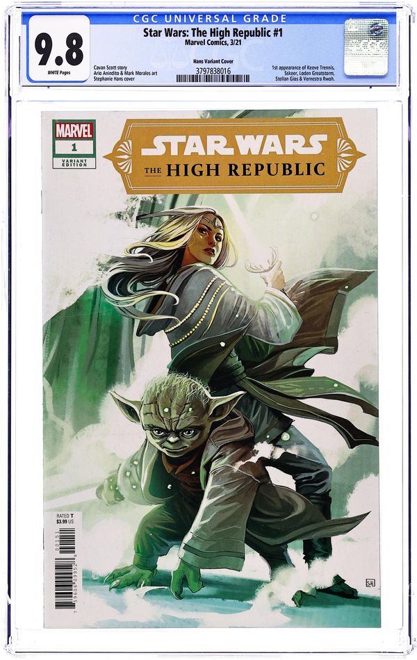 Written by Cavan Scott. Art by Ario Anindito and Mark Morales. Cover by Stephanie Hans. BEFORE THE SKYWALKER SAGA! THE GOLDEN AGE OF THE JEDI! A new era of STAR WARS storytelling begins. It is centuries before the SKYWALKER SAGA. The JEDI are at their height, protecting the galaxy as REPUBLIC pioneers push out into new territories. As the Frontier prepares for the dedication of majestic STARLIGHT BEACON, PADAWAN KEEVE TRENNIS faces the ultimate choice - will she complete her Jedi Trials or rescue the innocent from disaster? New Jedi! New ships! New evils to fight! 28 pages, full color. Rated T Cover price $3.99.