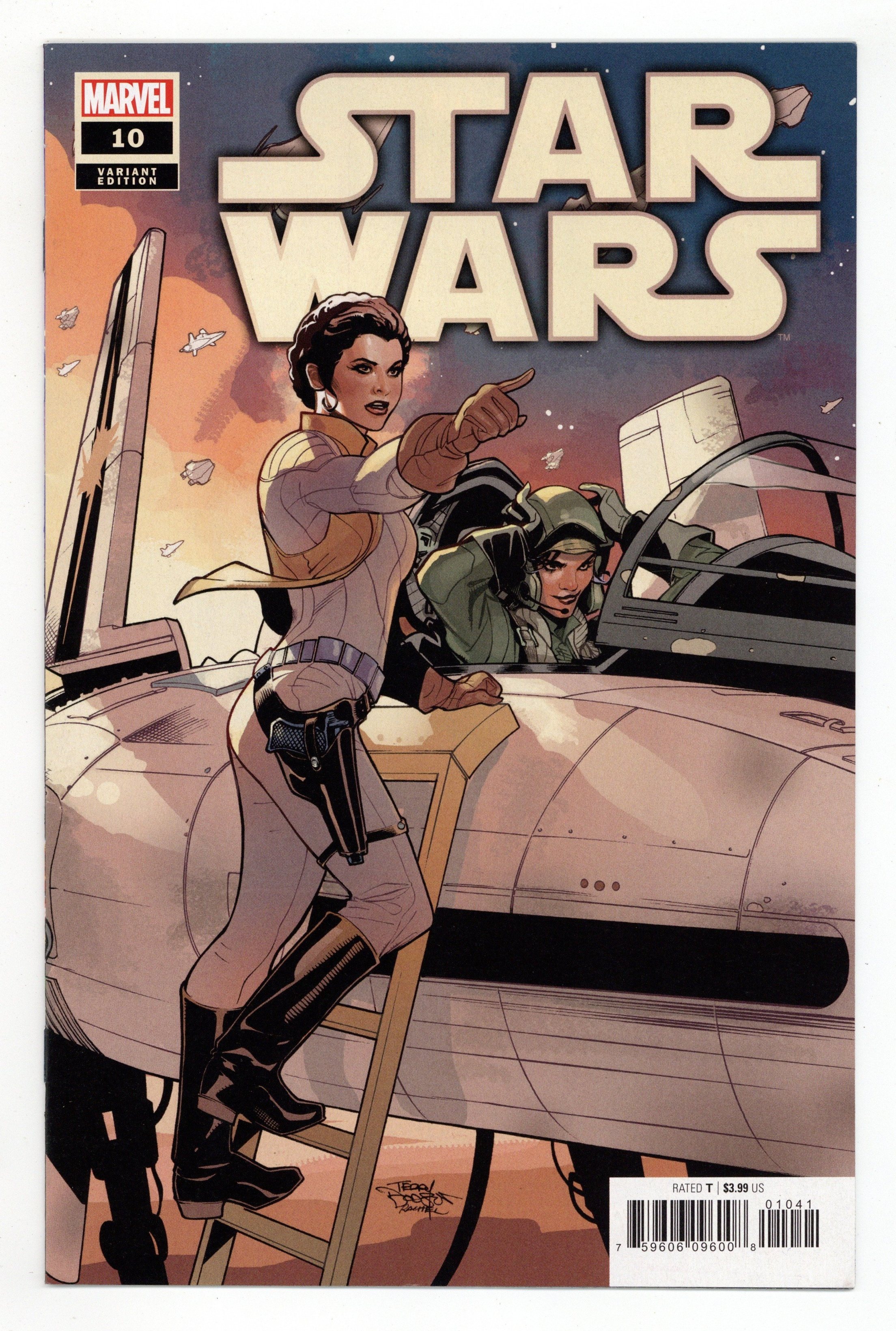 Limited 1 for 25 Retailer Incentive Variant Cover. Written by Charles Soule. Art by Jan Bazaldua. Cover by Terry and Rachel Dodson. 'OPERATION STARLIGHT, PART 2 (OF 3)' - REELING FROM THE LOSS OF ONE OF THEIR OWN, THE REBELS FINALLY SEE A PATH FORWARD! THE REBELS attempt to create a new communications code that THE EMPIRE will never be able to crack, in hopes that they might be able to safely reunite their scattered fleet and rejoin the fight. However, the code has a cost, one that LANDO CALRISSIAN is not willing to pay! Meanwhile, STARLIGHT SQUADRON, the group of elite pilots tasked with finding the scattered divisions of the fleet, heads out on its first deadly mission. 28 pages, full color. Rated T Cover price $3.99.