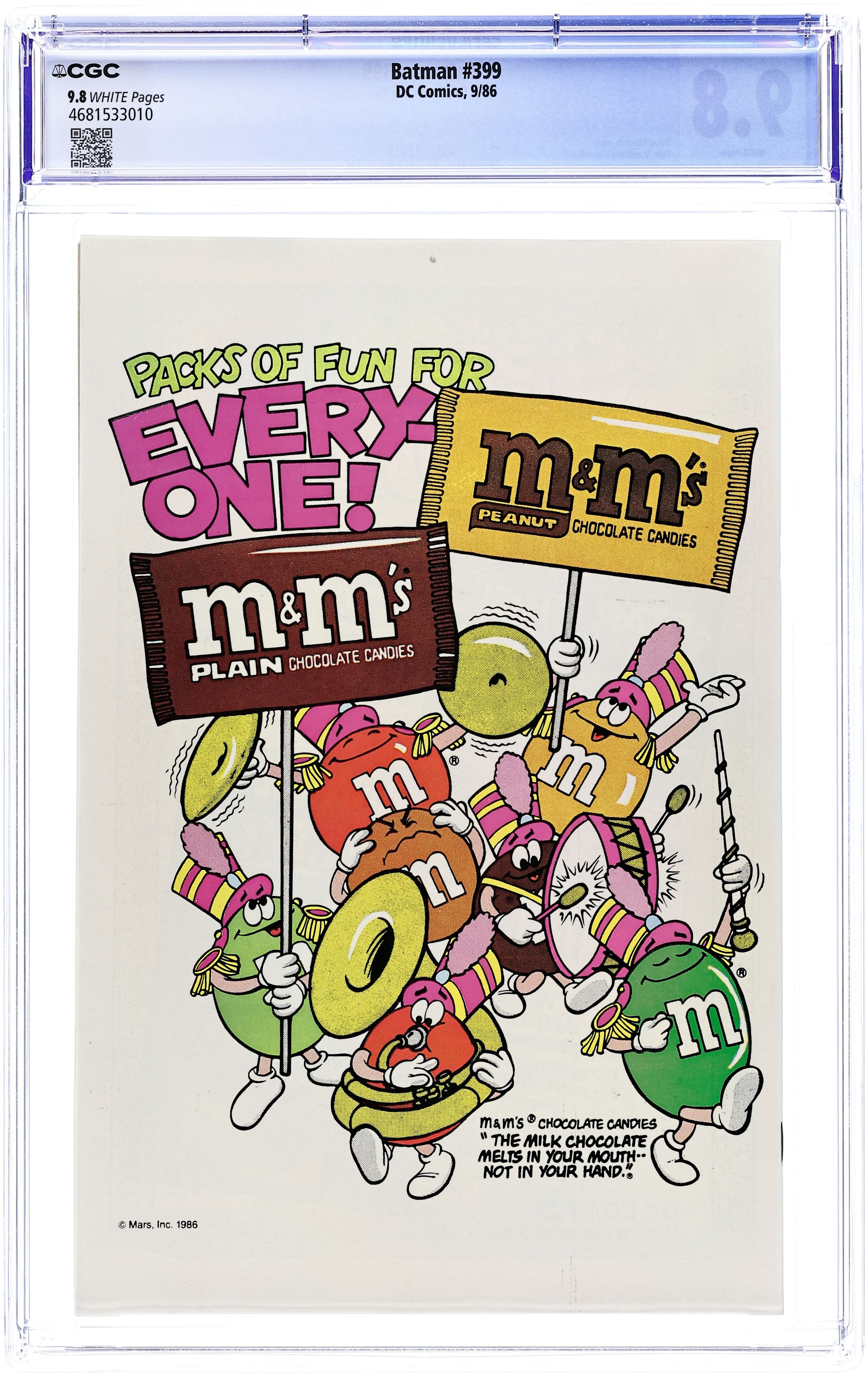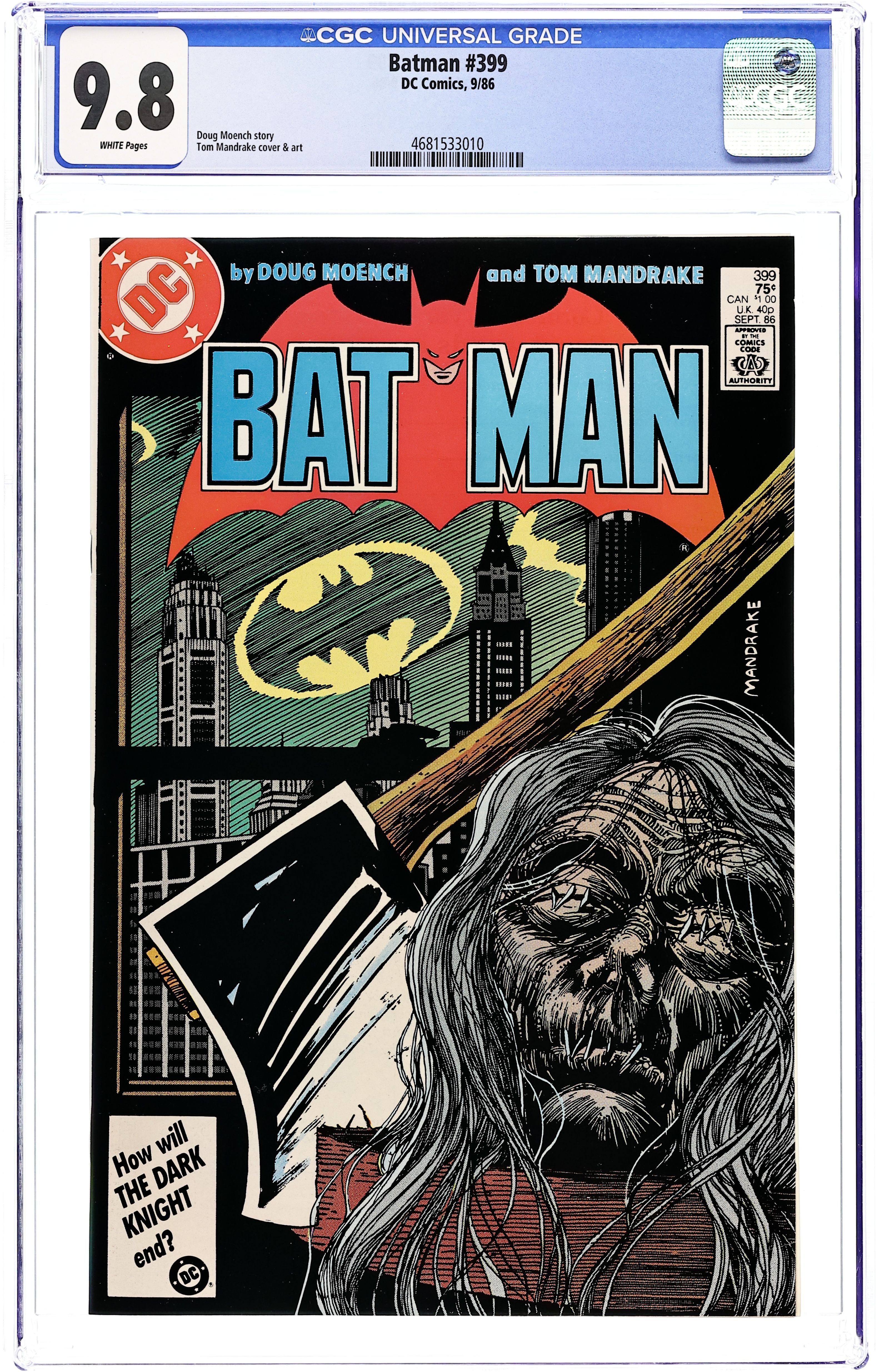 Cover art by Tom Mandrake. "Strike Two!", script by Doug Moench, art by Tom Mandrake; Batman and Catwoman continue to try to get the goods on Roy Spivey, who has shrunk the head of his decapitated victim; The dead lady's head is mailed to her roommate's boyfriend; Batman stakes out and bugged the suspect's apartment; The surprises mount and an era comes to an end in this issue. Part 2 of 2, continued from Detective Comics (1937) #565. NOTE: Most issues from 397-432 were reprinted in 1989 and sold in multipacks. These 2nd and 3rd prints have back cover ads dated 1989. 36 Pages, Full Color. Cover price $0.75.