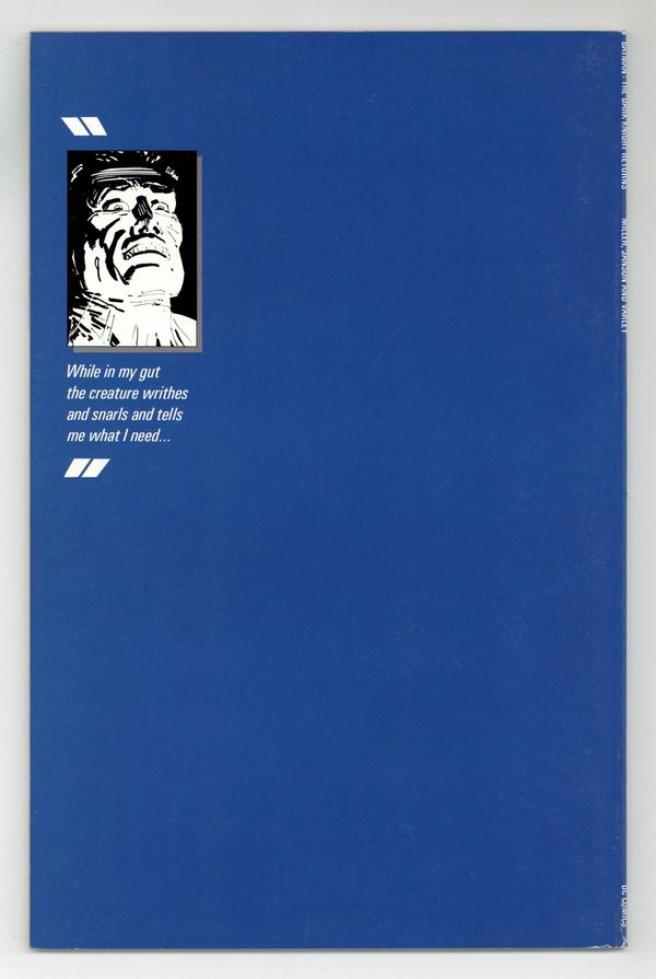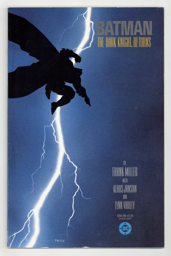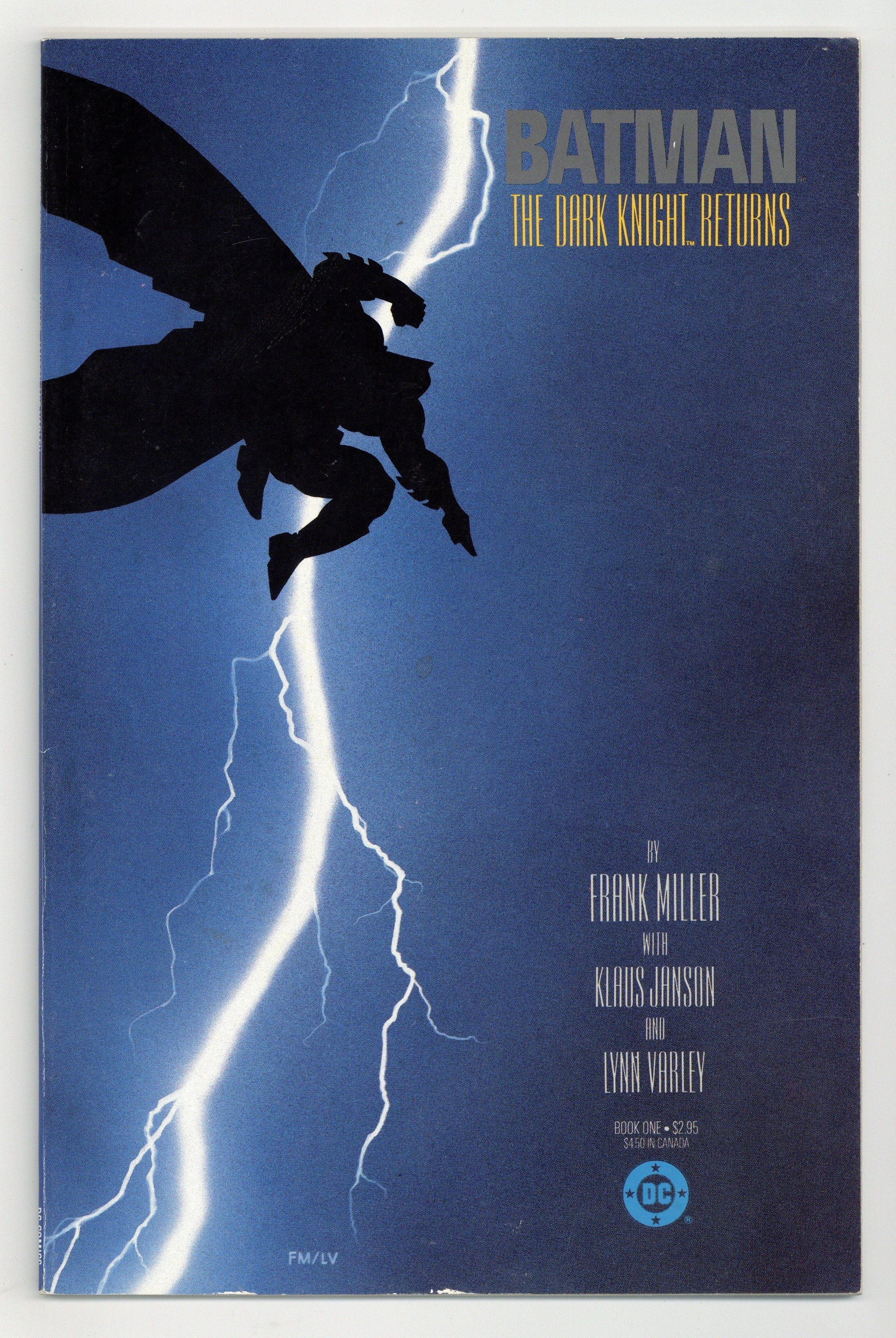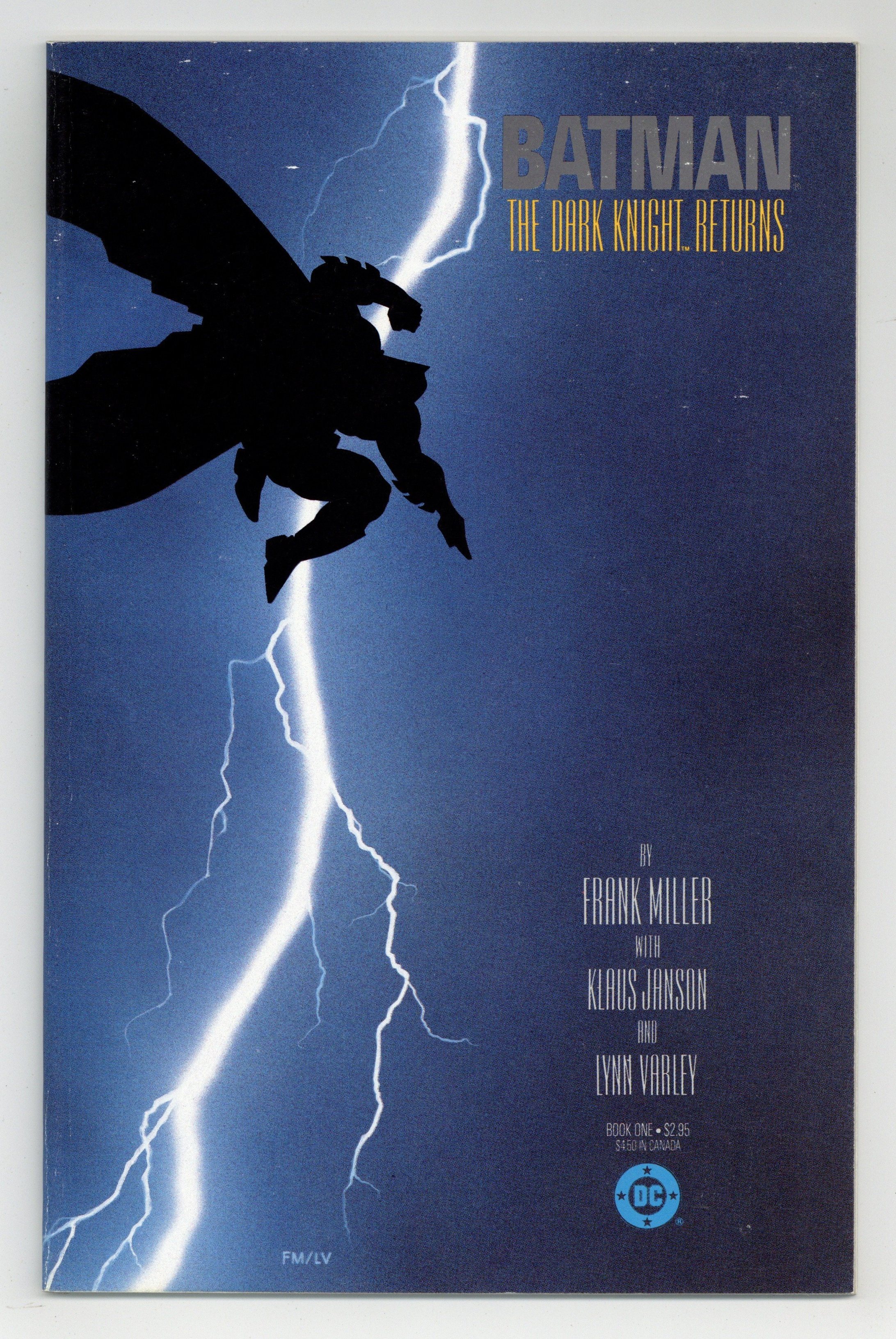 Tags: Batman$80.001st printing. NOTE: 2nd, 3rd, and 4th printings of #1 are labeled as such on the inside cover. Cover by Frank Miller. "The Dark Knight Returns," script and pencils by Frank Miller, inks by Klaus Janson; Set 20 years in the future, this story finds that in the absence of superheroes, criminals have run amok, and a gang called the Mutants are terrorizing Gotham City; Bruce Wayne has been retired from super-heroing for 10 years following the death of Jason Todd, the second Robin; Despite Wayne's funding of the rehabilitation of Harvey Dent (Two-Face), Dent returns to being a super-villain; Bruce, overcome with the grief over what Gotham has become, dons the Batman costume again and captures Dent. 52 pgs., full color. Cover price $2.95.