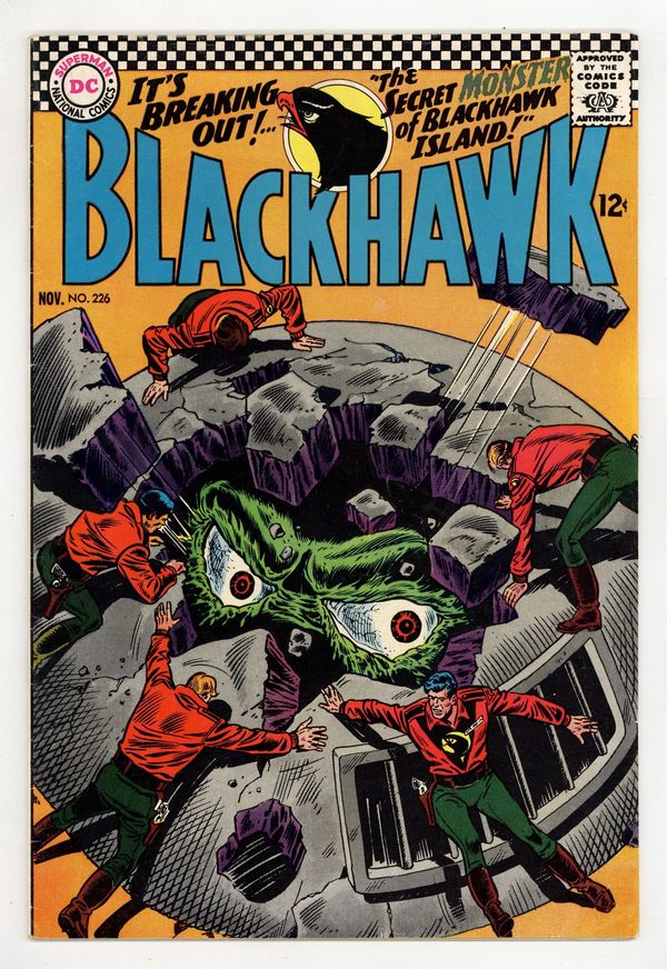 Two-part story, "The Secret of Blackhawk Island." Script by France E. Herron, pencils by Dick Dillin, inks by Charles Cuidera. Back-up story, "The Mystery Prisoner of Stalag 13!" Cover price $0.12.