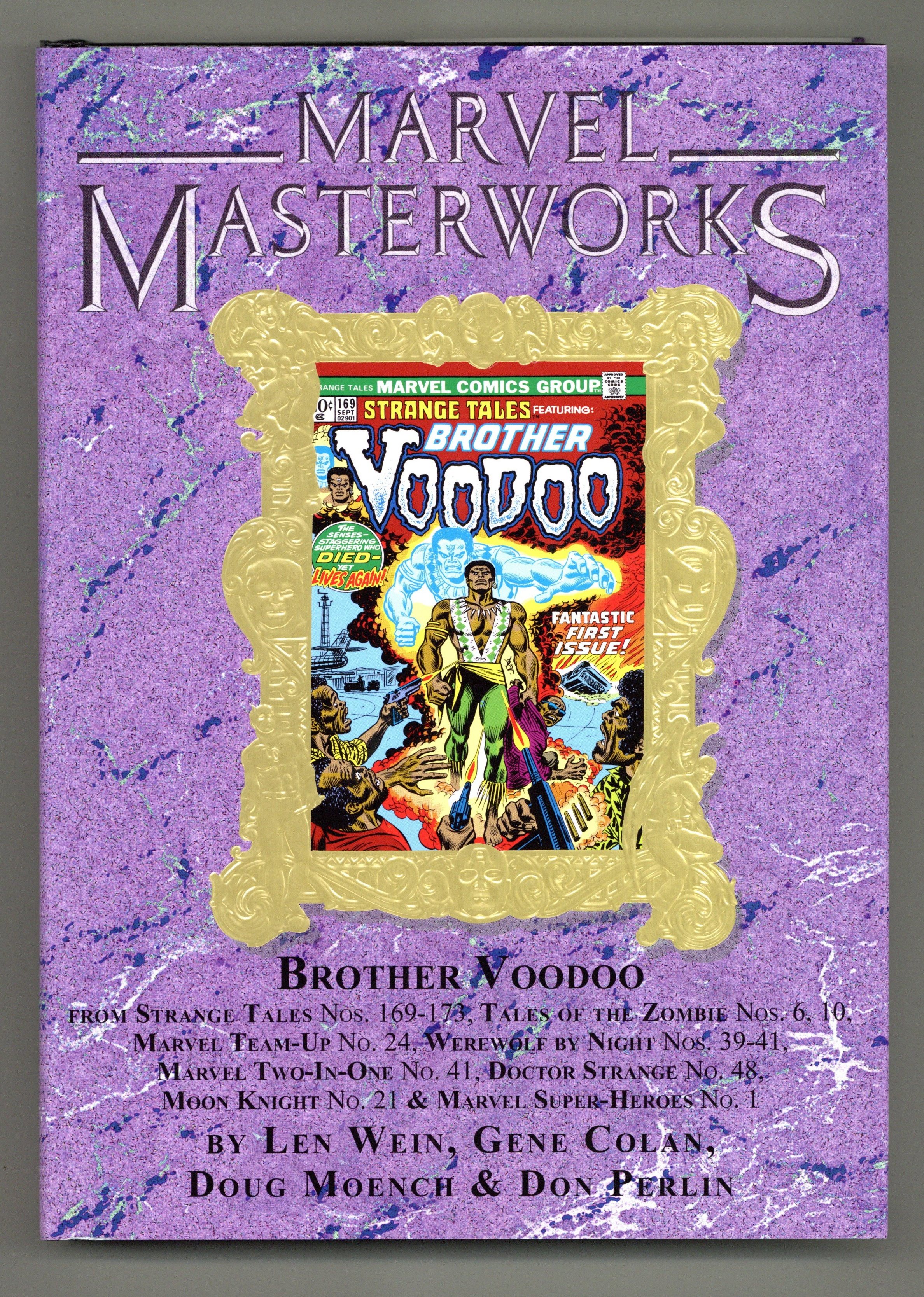 Volume 305 - 1st printing. "Brother Voodoo: Book 1!" Collects Strange Tales (1951-1976 1st Series) #169-173, Marvel Team-Up (1972-1985 1st Series) #24, Werewolf by Night (1972-1977 1st Series) #39-41, Marvel Two-in-One (1974-1983 1st Series) #41, Doctor Strange (1974-1987 2nd Series) #48, Moon Knight (1980-1984 1st Series) #21; material from Tales of the Zombie (1973) Magazine #6 and 10, The Tomb of Dracula (1972-1979 1st Series) #34-37, Werewolf by Night (1972-1977 1st Series) #38, Marvel Super Heroes (1990-1993 2nd Series) #1, and Doctor Strange (1988-1996 3rd Series) #16-17, #20.
