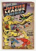 Tags: Justice League/Society$150.00- Cover detached at one staple. 1 1/4" Spine split from bottom. Multiple lateral spine tears. Cover oxidation. Water damage.