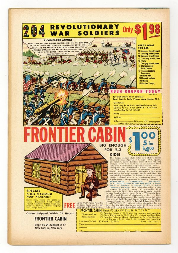 $30.50Cover by Joe Kubert. "Three Caverns of Doom," script by France Herron, art by Joe Kubert; A magic crystal, created by an ancient sorcerer, is found by a man named Zenod, who uses its power for his own evil purposes; Two more crystals remain hidden underground, and Cave Carson and his friends are going to do whatever it takes to stop Zenod from retrieving the whole set. Statement of ownership - average paid circulation 245,000. 36 Pages, Full Color. Cover price $0.12.