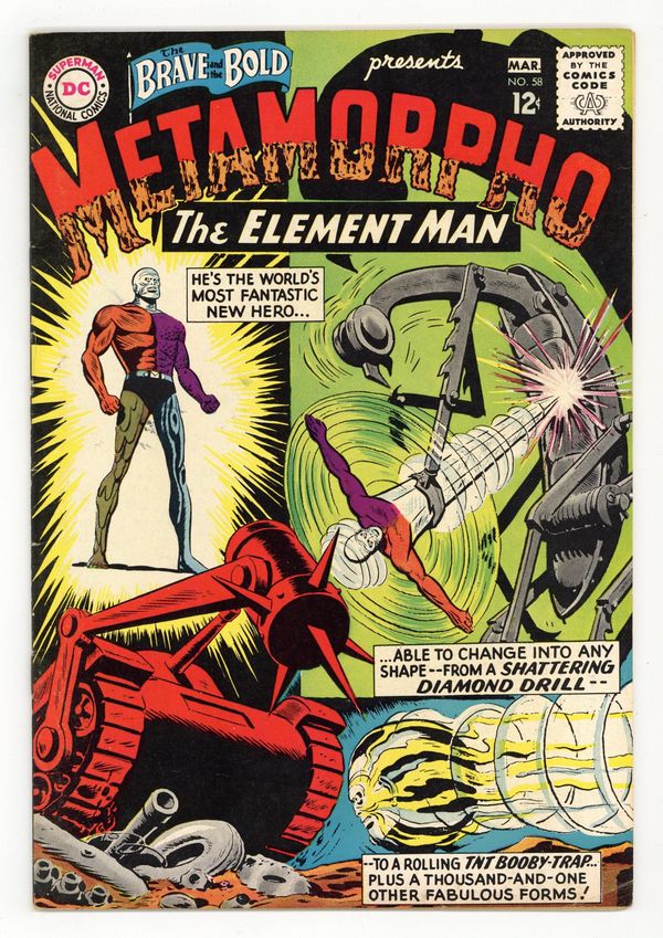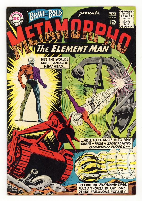 Cover pencils by Ramona Fradon, inks by Charles Paris. 2nd appearance of Metamorpho in "The Junk Yard of Doom," script by Bob Haney, pencils by Ramona Fradon, inks by Charles Paris; World War II-era traitor Maxwell Tremaine kidnaps Metamorpho with the aid of the Orb of Ra, tries to make him repair the broken super-weapons in his "junk yard of doom" for use in world conquest, and ends up battling the Element Man with them when he refuses. Don't Give Fire A Place to Start! public service announcement starring Superboy, script by Jack Schiff, art by Win Mortimer. The Human Chemical Plant article about Metamorpho. From the Inventor's Workbench filler page about a lunch box patent by Henry Boltinoff. 36 Pages, Full Color. Cover price $0.12.