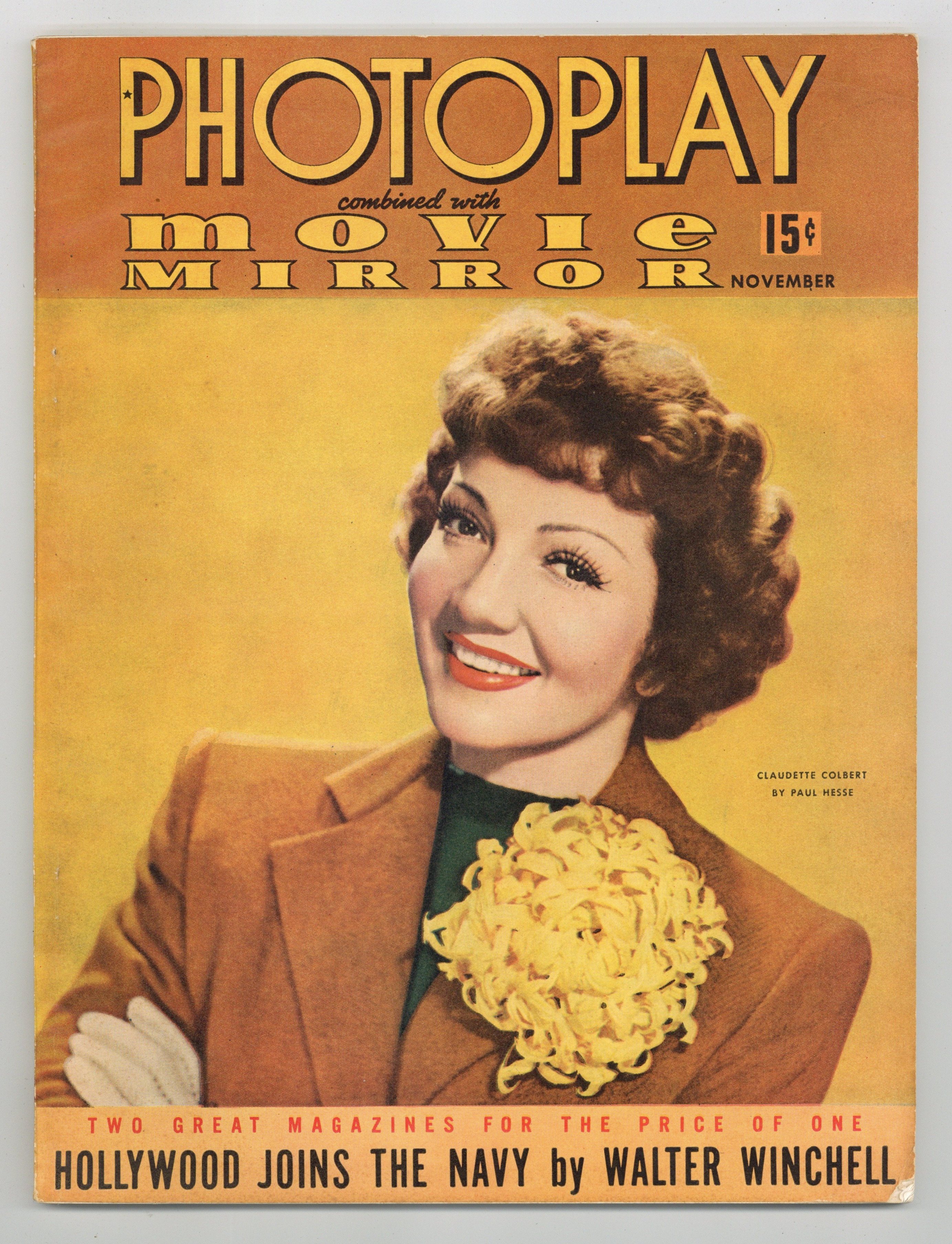 Vol. 19, No. 6. November 1941. Claudette Colbert cover. Full-color portraits of Lucille Ball, Sterling Hayden, and Deanna Durbin. 8.5" x 11.5". 104 pages. Black and white. Cover price $0.10.