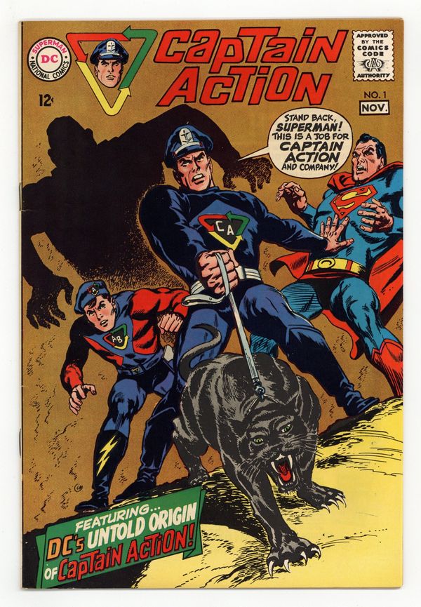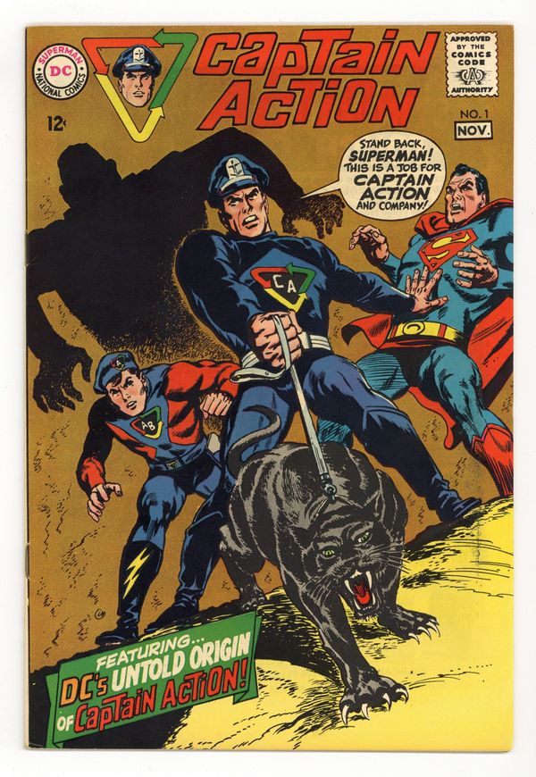 "Origin of Captain Action." An archaeological dig results in the discovery of ancient coins, which give Clive Arno the power of the gods and Krellik the power of the evil gods. Guest starring Superman. Based on the dolls (I mean action figures) created by the Ideal Toy Company. Script by Jim Shooter, art by Wally Wood. Cover by Carmine Infantino and Irv Novick. Cover price $0.12.