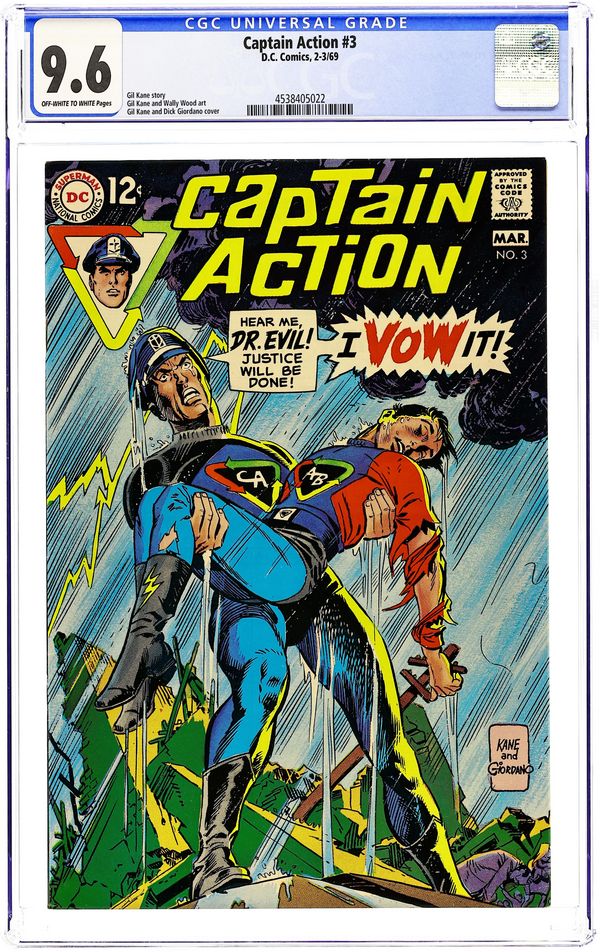 "And Evil This Way Comes." Captain Action's father-in-law gets super evolved, becomes the super-powered Dr. Evil, and tries to destroy humankind. Based on the dolls (I mean action figures) created by the Ideal Toy Company. Script and pencils by Gil Kane, inks by Wally Wood. Cover by Kane and Dick Giordano. Cover price $0.12.