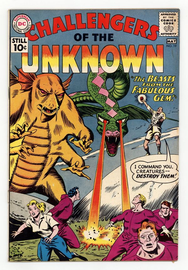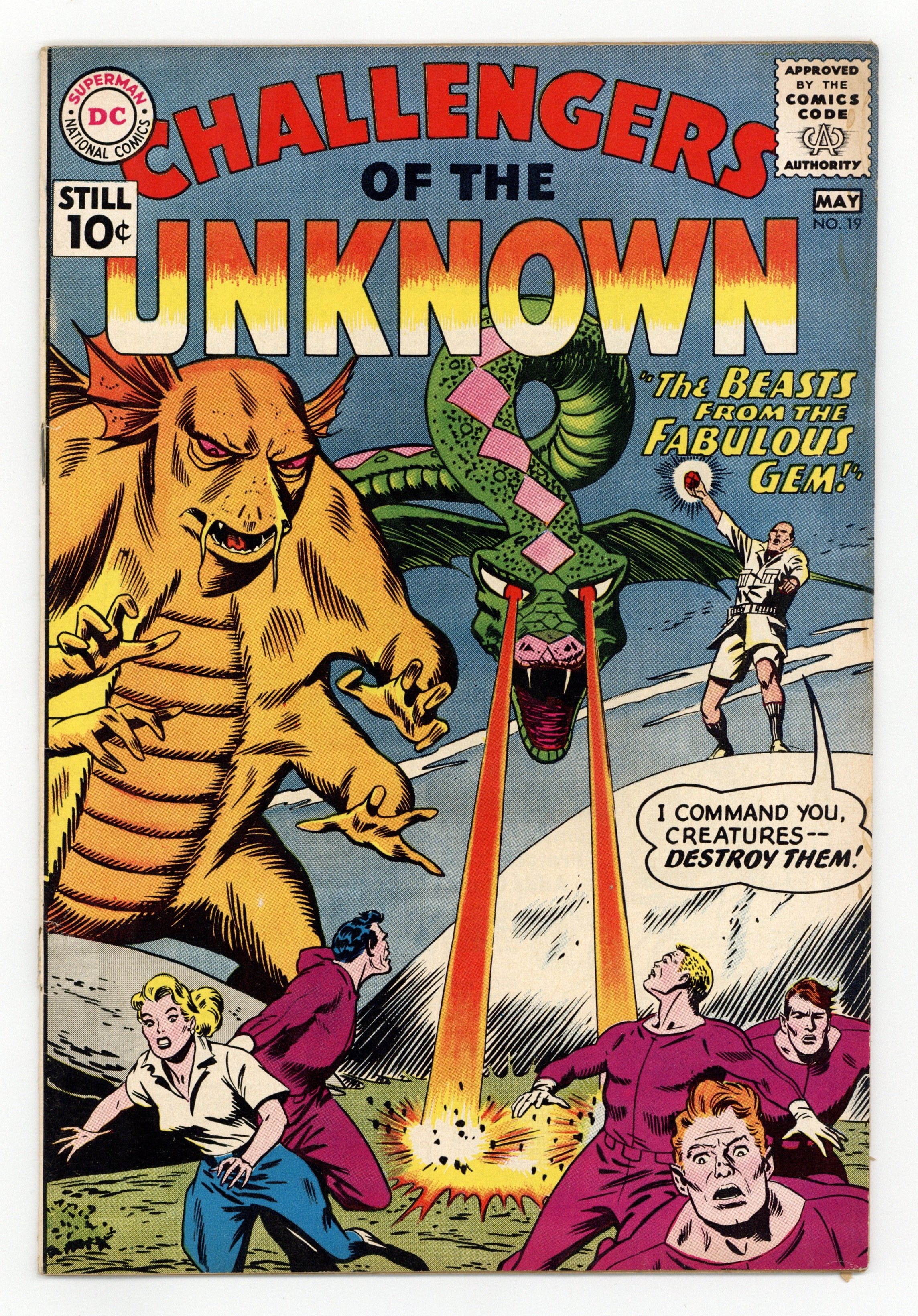 "The Alien Who Stole a Planet." The Challengers face a hostile crew member of a Noah's Ark-like alien ship. "The Beasts from the Fabulous Gem." A villain controls a sorcerer's stone that enables him to control a pair of monsters. Art and cover by Bob Brown. Cover price $0.10.