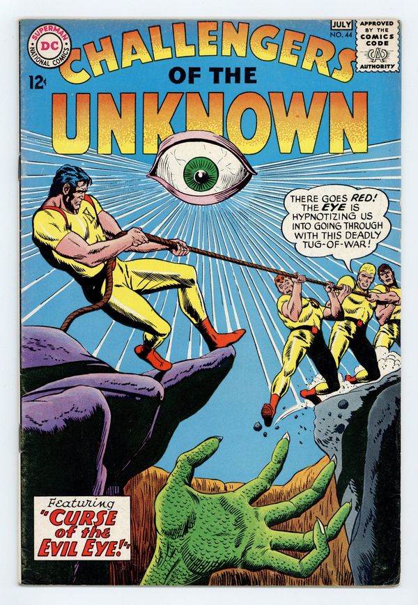 "The Curse of the Evil Eye." A giant eye intends on killing the Dragio family. Script by Bill Finger, art by Bob Brown. "Ace--The Challenger Who Went Bad." The Challengers battle the Gas Master, whose weaponry turns Ace into a traitor. Script by Dave Wood, art by Brown, Cover by Brown. Cover price $0.12.