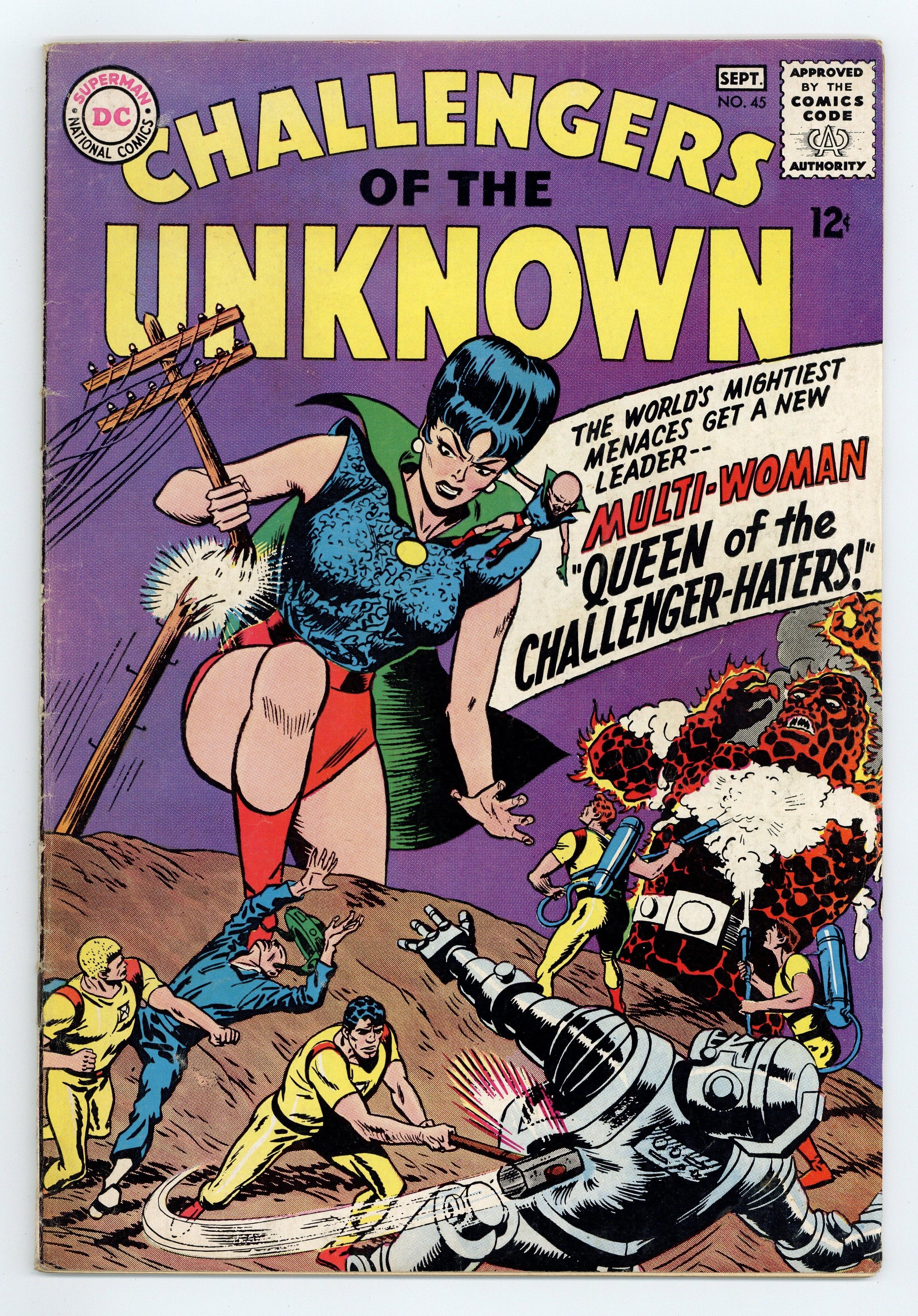 "The Queen of the Challenger-Haters." Multi-Woman teams up with the League of Challenger-Haters against the Challengers. Script by Arnold Drake, art and cover by Bob Brown. President Lyndon Johnson cameo. Cover price $0.12.