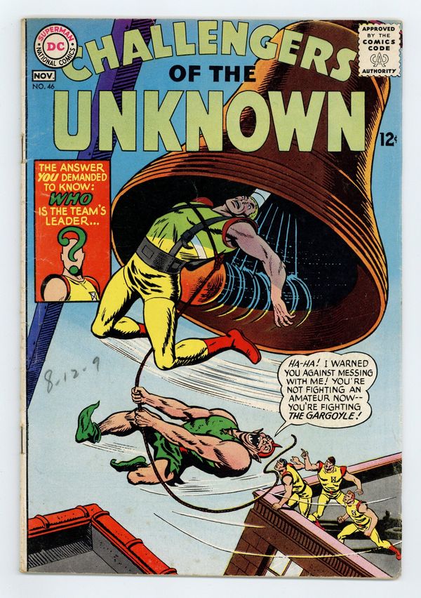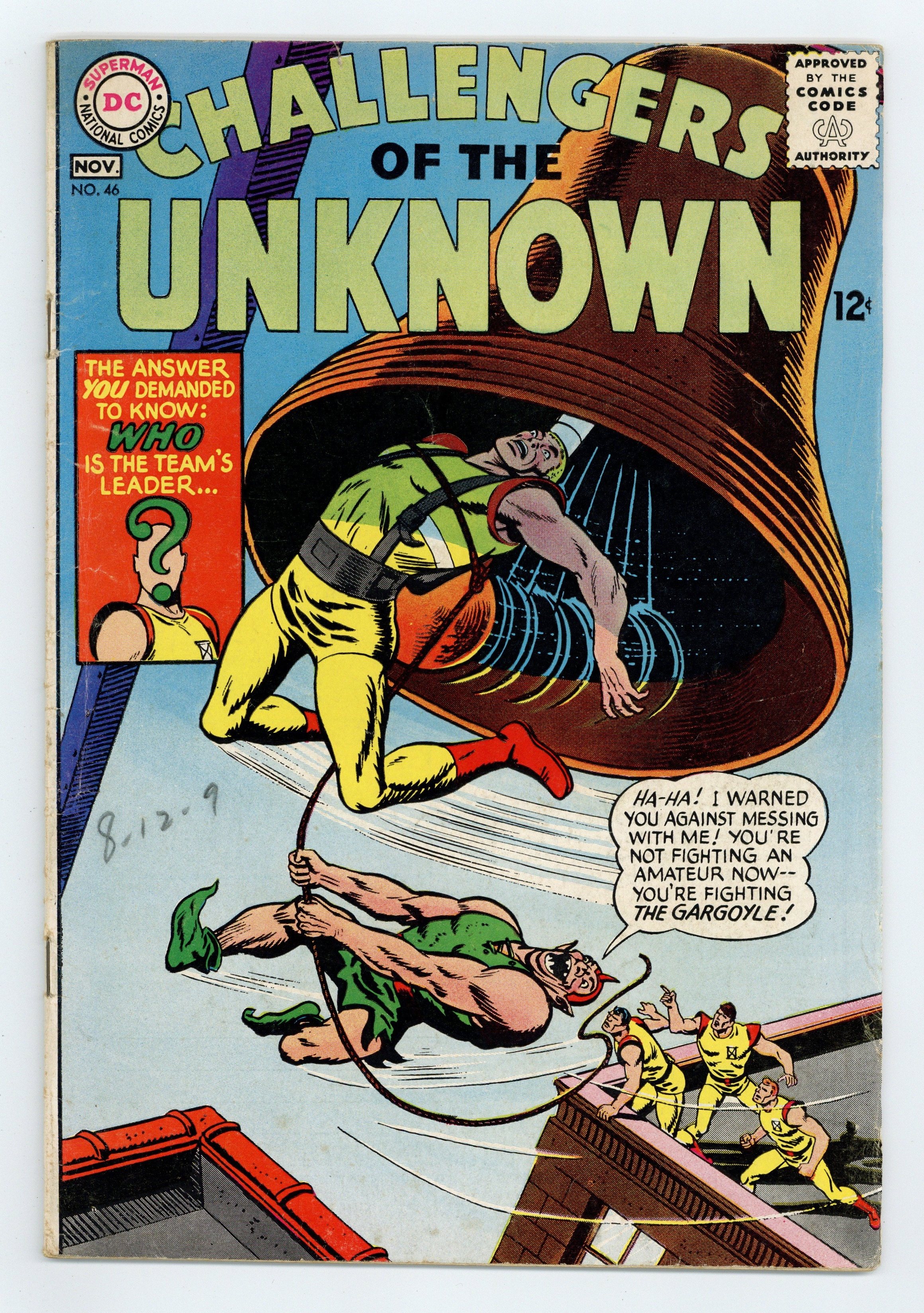 "The Strange Schemes of the Gargoyle." The Gargoyle intends to pay for an operation to restore a blind girl's sight. "The Best Challenger Wins." The Challengers, each armed with a supposedly useless weapon, go to the Gargoyle's mountain hideout. Scripts by Bill Finger, art and cover by Bob Brown. Cover price $0.12.
