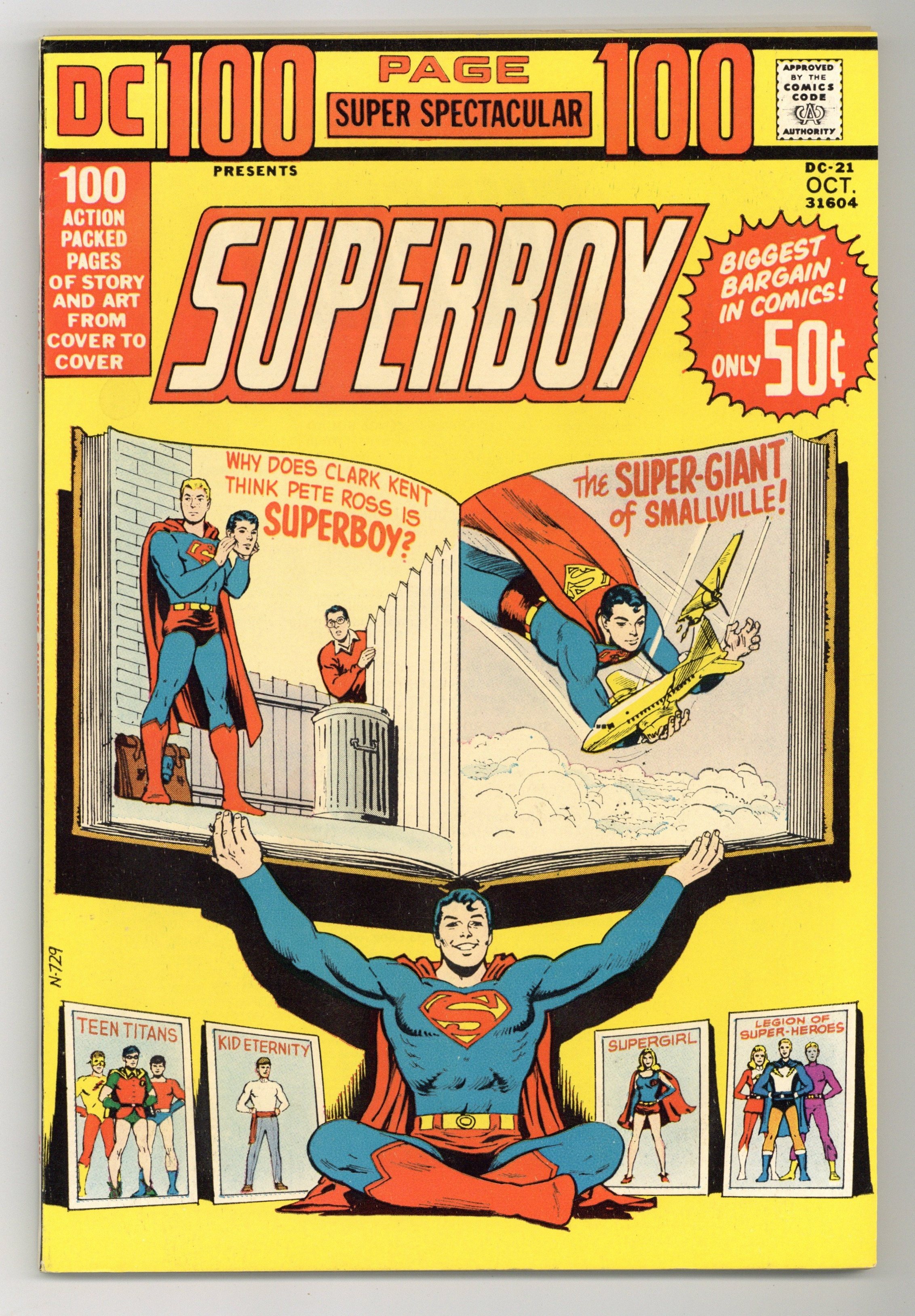 Superboy stars in "The Superboy Revenge Squad!" Originally presented in Superboy #94, art by George Gapp. Supergirl's friend Lena Thorul learns she is the sister of the sinister Lex Luthor in "Lena Thorul, Jungle Princess!" Originally presented in Action Comics #313, art by Jim Mooney. Kid Eternity battle the Beagle. Originally presented in Kid Eternity #9. Plus, reprints of Adventure Comics #332 by Edmond Hamilton and John Forte, Brave and the Bold #54 starring the Teen Titans (Robin, Kid Flash, and Aqualad), and Superboy #50 by Otto Binder, Curt Swan, and George Klein. Cover price $0.50.