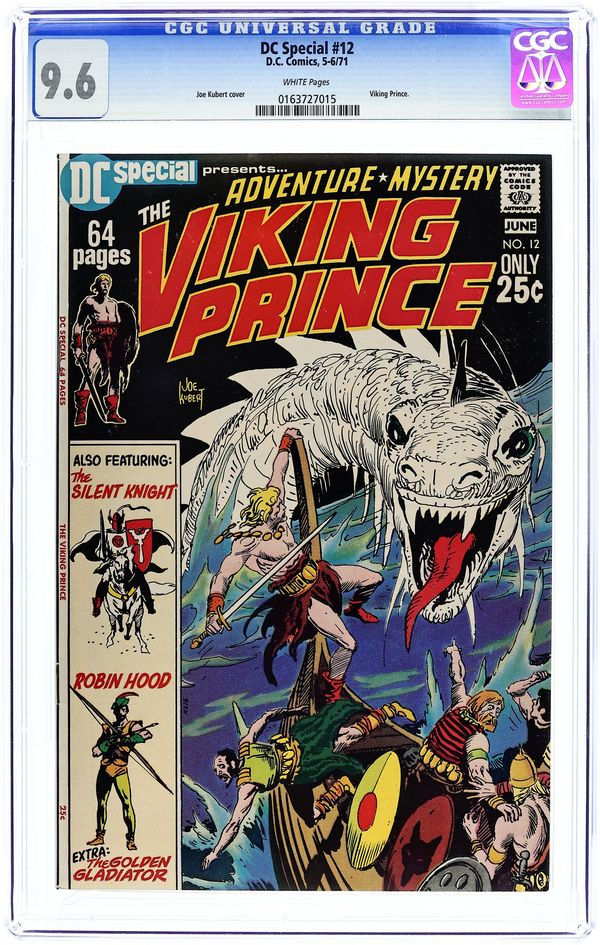 All reprints. 64 pages. The Viking Prince stars in "Battle for the Dragon Ship" (from The Brave and the Bold 1), "The Ice Dragon" (from B&B 5), and "The Viking and the Mermaid" (from B&B 16). Scripts by Robert Kanigher, art by Joe Kubert. The Silent Knight in "Duel in Forest Perilous!" Script by Kanigher, art by Irv Novick (from B&B 1). The Golden Gladiator in "The Thunder of the Chariots!" Art by Russ Heath (from B&B 1). Robin Hood in "Three Arrows Against Doom!" Art by Heath (from B&B 9). New Kubert cover. Cover price $0.25.