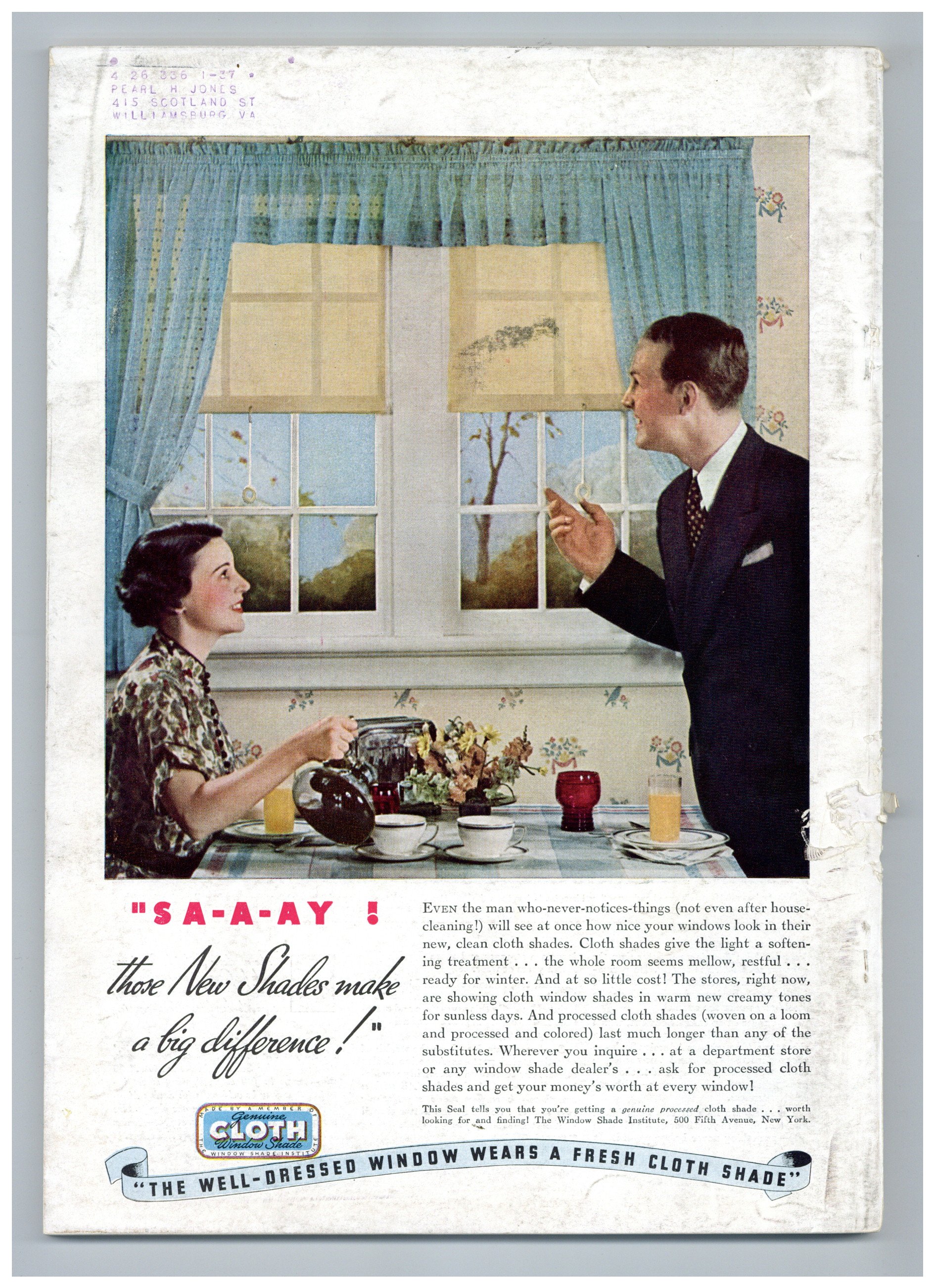 Vol. 15 #2 - Oct. 1936. Articles about gardening, home decor, remodeling, cooking, home plans and other advice and tips. 8 1/2-in. x 12-in., 138 pages, B&W with some full color. Cover price $0.10.
