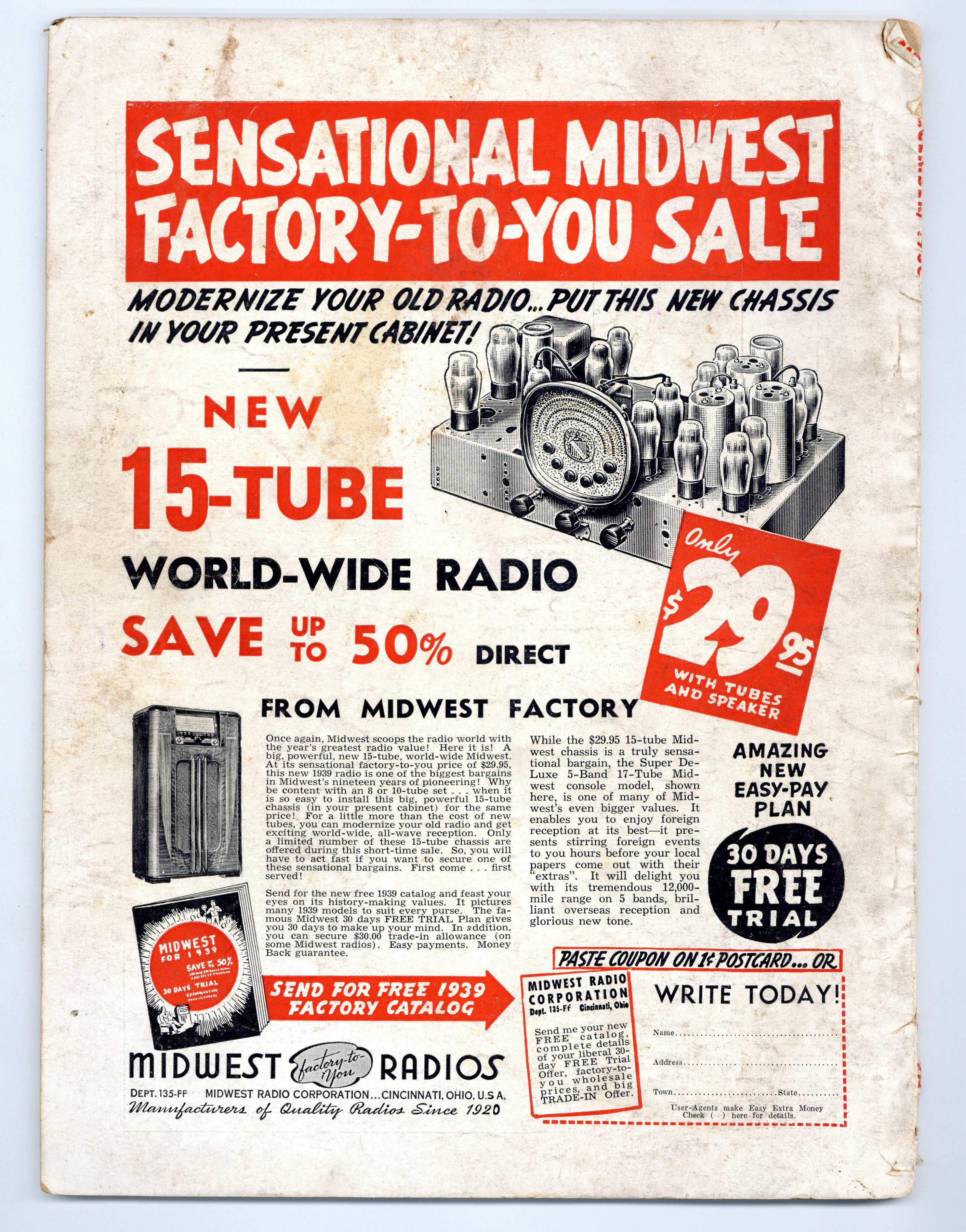 Published Jan 1939 by Dell Magazines.$18.75- Front cover detached 20%. Water damage: Slight. Staple rust: Slight.