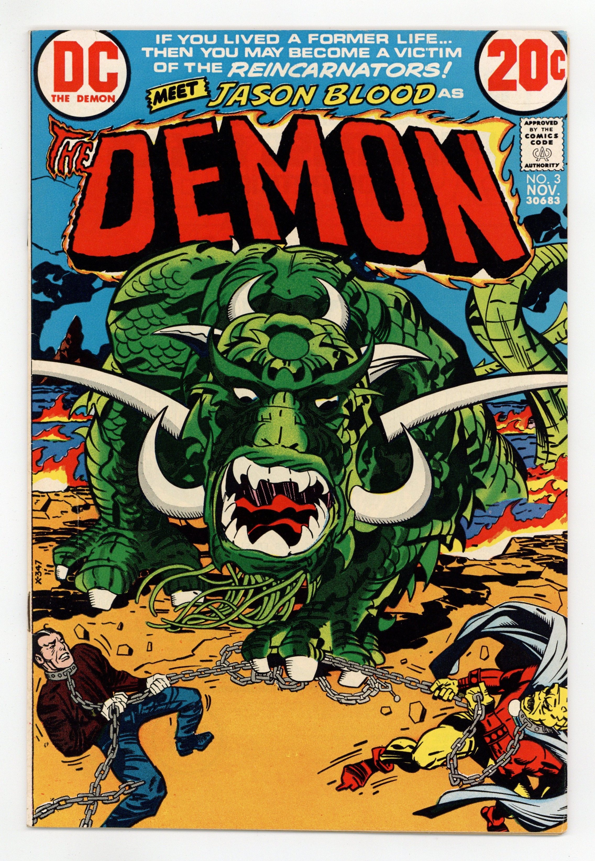 As an assassin attempts to take the life of Jason Blood, he instead comes face-to-face with the fiery fury of Etrigan the Demon! "Reincarnators!" Story and art by Jack Kirby. Cover price $0.20.