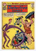 Tags: Batman$25.50Cover art by Sheldon Moldoff. "Bat-Mite's Super-Circus!" starring Batman and Robin, script by Bill Finger, pencils by Sheldon Moldoff, inks by Charles Paris; Bat-Mite comes to Earth and gives three crooks super-powers to make them more challenging to Batman and Robin; But a bump on the head blocks Bat-Mite from using his powers against the crooks, and the three opponents may be more than the heroes can handle; The strongman, the rubberman and the human cannonball are unstoppable with their powers combined and the heroes decide to them out one by one; Batman first tricks the Strongman into punching himself, knocking him out; Later, he tricks the Rubberman into bumping his head on a doorway as he tries to dodge one of Batman's punches. Pennies for UNICEF! public service announcement starring Superman, script by Jack Schiff, art by Sheldon Moldoff. "The Miniature Manhunter" starring John Jones Manhunter from Mars, art by Joe Certa; A criminal reduces Manhunter to miniature size. Airborne Rescue! article. Strange Old Laws humor half-page by Henry Boltinoff. 36 pgs., full color. Cover price $0.12.