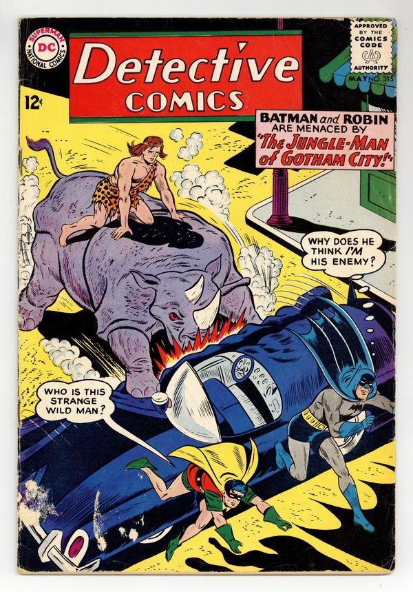 Cover art by Sheldon Moldoff. Countdown on Excellence public service announcement, script by Jack Schiff, art by Sheldon Moldoff. "The Jungle Man of Gotham City" starring Batman and Robin, pencils by Sheldon Moldoff, inks by Charles Paris; A gangster tricks a jungle man into thinking that Batman is his enemy, and brings him to Gotham to use his skills and the animals he commands against the Caped Crusader; With help from Commissioner Gordon, Batman and Robin discover that a married couple from Gotham City lost their kid in the jungle fifteen years ago and that the jungle man could easily be that kid; After a quick verification, Batman confirms the truth and he uses some of the jungle's man childhood memories in order to stop his attacks. The Robot Detective article. "The Man of 1,000 Disguises" starring John Jones Manhunter from Mars, art by Joe Certa; . Lefty Louie humor page by Henry Boltinoff. 36 pgs., full color. Cover price $0.12.