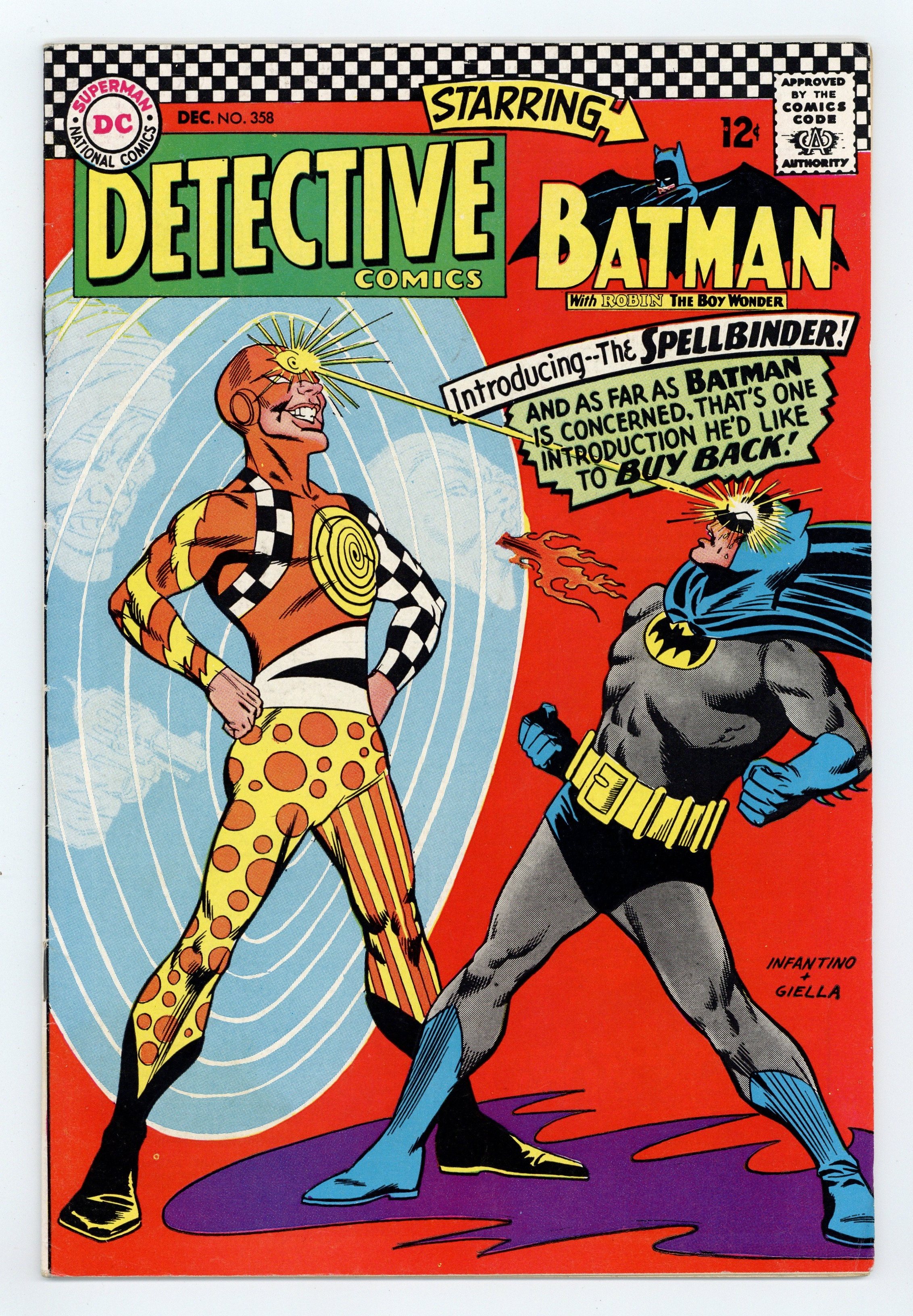 Written by John Broome. Art by Sheldon Moldoff (ghosting for Bob Kane) and Joe Giella. Cover by Carmine Infantino and Joe Giella. The Circle of Terror!; Batman and Robin battle Spellbinder, a new supervillain who puts Batman into a trance. Written by Gardner Fox. Art by Sid Greene. The Faker-Takers of the Baker's Dozen!; Sue Dibny is going to unveil the paintings Peter Baker at an art gallery, but the paintings are missing. Cap's Hobby Hints by Henry Boltinoff. Pennies for UNICEF! public service announcement with Superman, written by Jack Schiff, art by Sheldon Moldoff. 36 pages, full color. $0.12. Cover price $0.12.