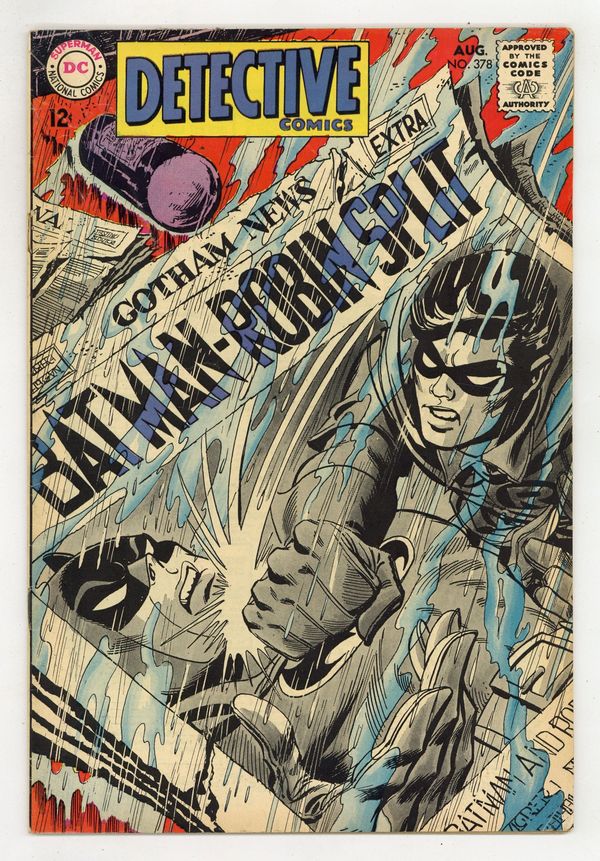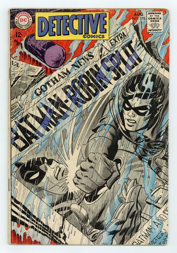 Written by Frank Robbins. Art by Bob Brown and Joe Giella. Cover by Irv Novick. Batman! Drop Dead... Twice!; a disgruntled Robin leaves Batman; a bad guy named Salvo and his apprentice Chino have a similar falling out; Chino and Robin become roommates. Written by Gardner Fox. Art by Sid Greene. Menace of the Man-Killing Shooting Gallery!; a local syndicate threatens Hanford Jenkins, hiding a weapon in his apartment; Ralph Elongated Man and Sue Dibny visit their friends in the same building. 36 pages, full color. $0.12. Cover price $0.12.