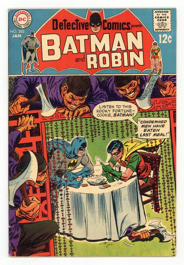Written by Frank Robbins. Art by Bob Brown and Joe Giella. Cover by Irv Novick. The Fortune-Cookie Caper!; Robin reads a fortune cookie message about a prisoner in a bakery; bad guys steal the message. Written by Gardner Fox. Art by Sid Greene. Pursuit of the Bugged Bandits!; while trying to thwart jewel thieves, Elongated Man gets knocked out; quick-thinking Billy warner puts a coin with a transmitter in their getaway car. Letters to the editor from comics writers Mike Barr and Martin Pasko, and comics historian Peter Sanderson Jr. 36 pages, full color. $0.12. Cover price $0.12.