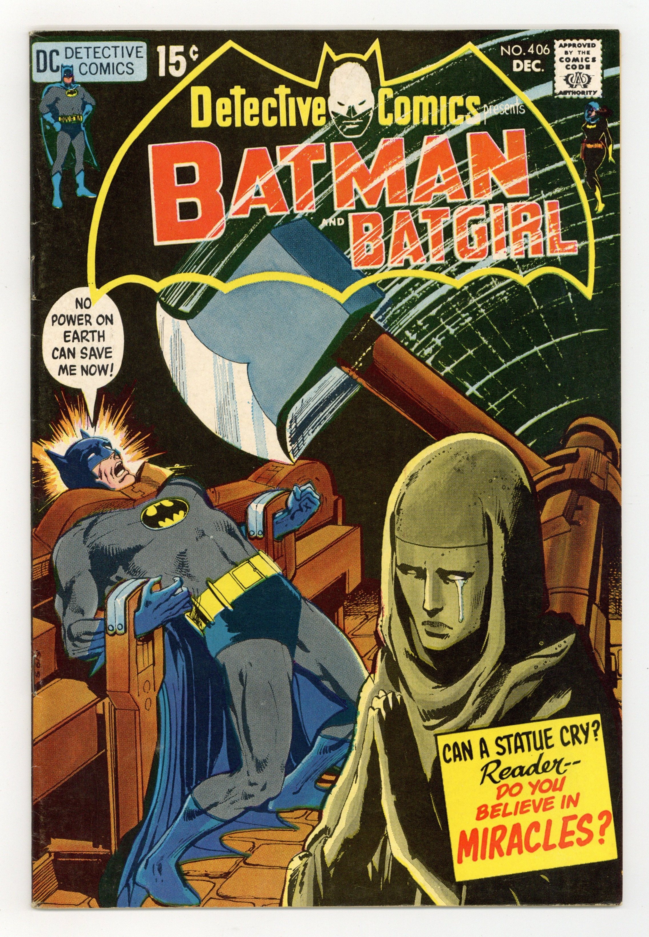 Cover by Neal Adams. "Your Servant of Death - Dr. Darrk!," script by Denny O'Neil, pencils by Bob Brown, inks by Frank Giacoia; Batman is lured into a deathtrap in the home of a shipping magnate marked for death by Dr. Darrk and the League of Assassins, but may have a saint on his side. "The Explosive Circle!," script by Frank Robbins, pencils by Gil Kane, inks by Vince Colletta; When a residential building is blown up, the sole clue is a book taken out from Gotham Public Library; Finding the book is popular among young hippies/protesters, Barbara Gordon decides to investigate further as Batgirl. DC Takes Top Honors at Comic Art Convention article featuring head sketches by Neal Adams of winners Carmine Infantino, Joe Kubert, Dick Giordano and Neal Adams. Letter to the editor from comics writer Martin Pasko. 36 pgs., full color. $0.15. Cover price $0.15.