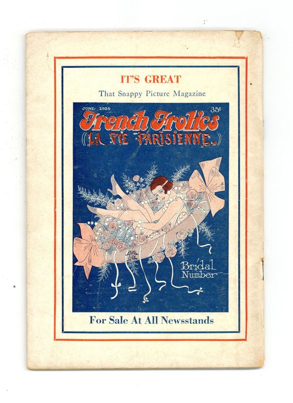 Volume 1, issue 12 - June, 1925. Men's interest humor digest poking fun at the differences between men and women, as well as bar jokes and cartoons. Also includes full page "Flapper" pin-up photographs. Digest Sized, 5" x 7", 40 pages, B&W. Cover price $0.25.