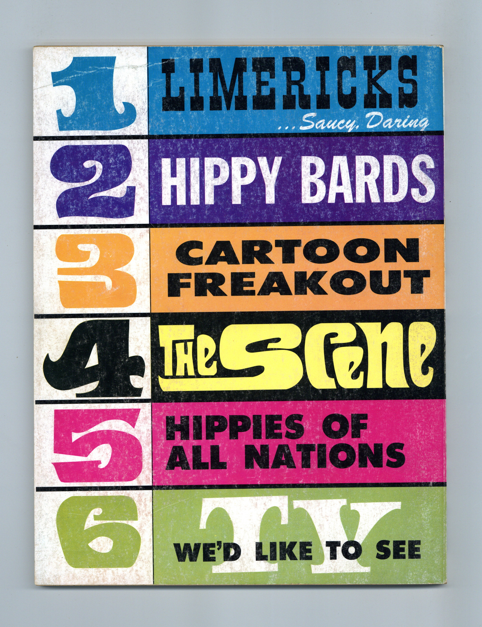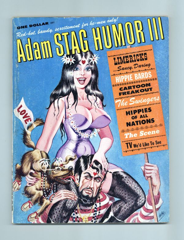 Published 1968 by Knight Publishing.$32.00Annual collection of jokes, single-panel cartoons and stories. Bill Ward cover. Cartoons by Bill Rotsler, Charles Rodriguez, Bill Wenzel and others. Lengthy illustrated limerick section and humorous captioned stills from silent movies. Bill Ward contributes six detailed, full-page illustrations for "Hippies of all Nations." Eight pages of art with silly captions, including two by Norman Lindsay. Illustrated article "TV We'd Like to See" includes Garrison's Guerillas, Capt. Kangaroo, Star Trek, Gunsmoke and Peyton Place. "Hippie Takeover" features four full-page Bill Ward illustrations. 8 1/4-in. x 10 3/4-in., 98 pages, B&W. Cover price $1.00.
