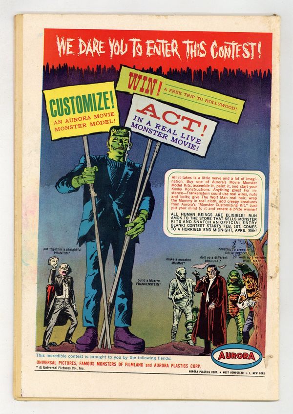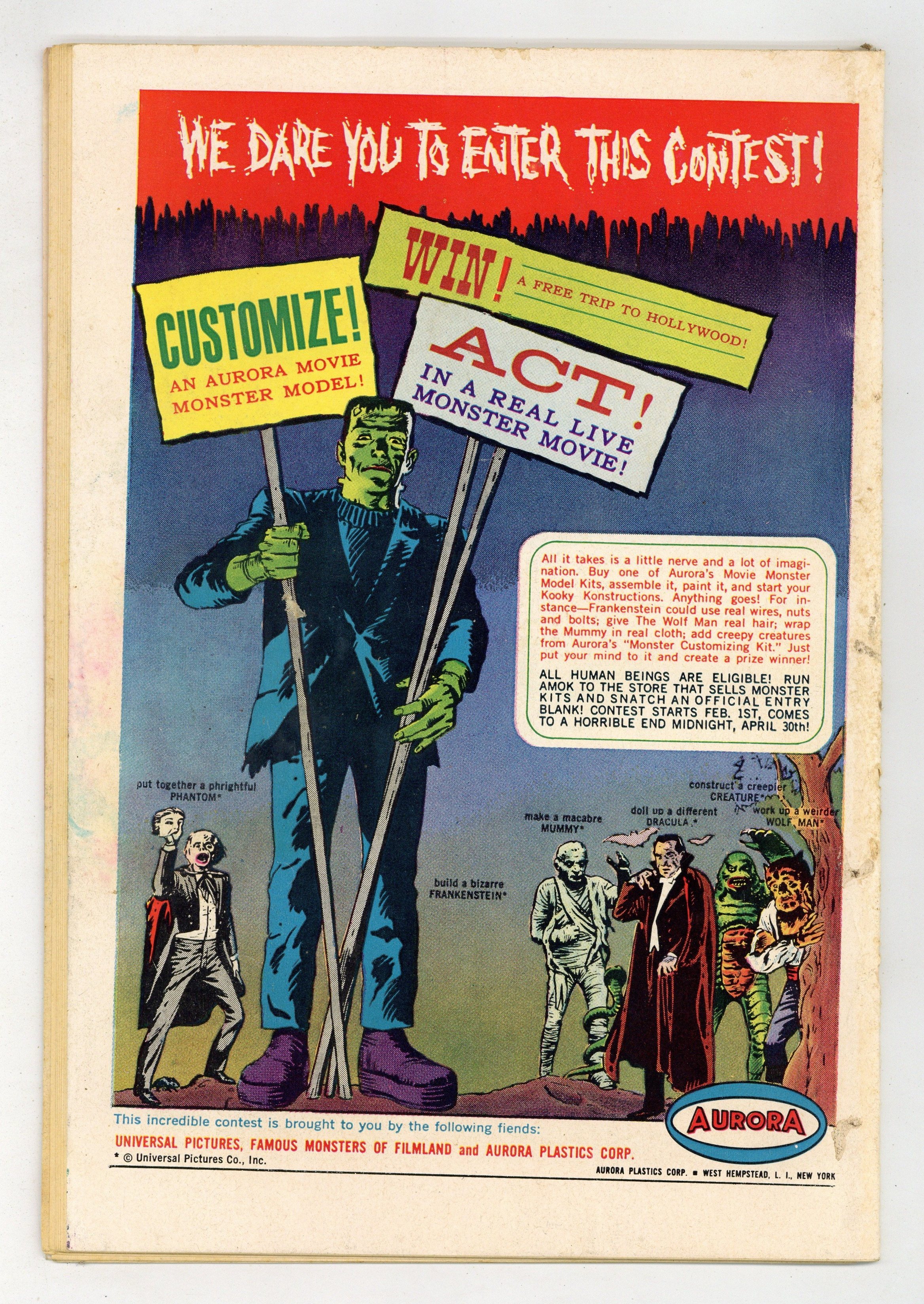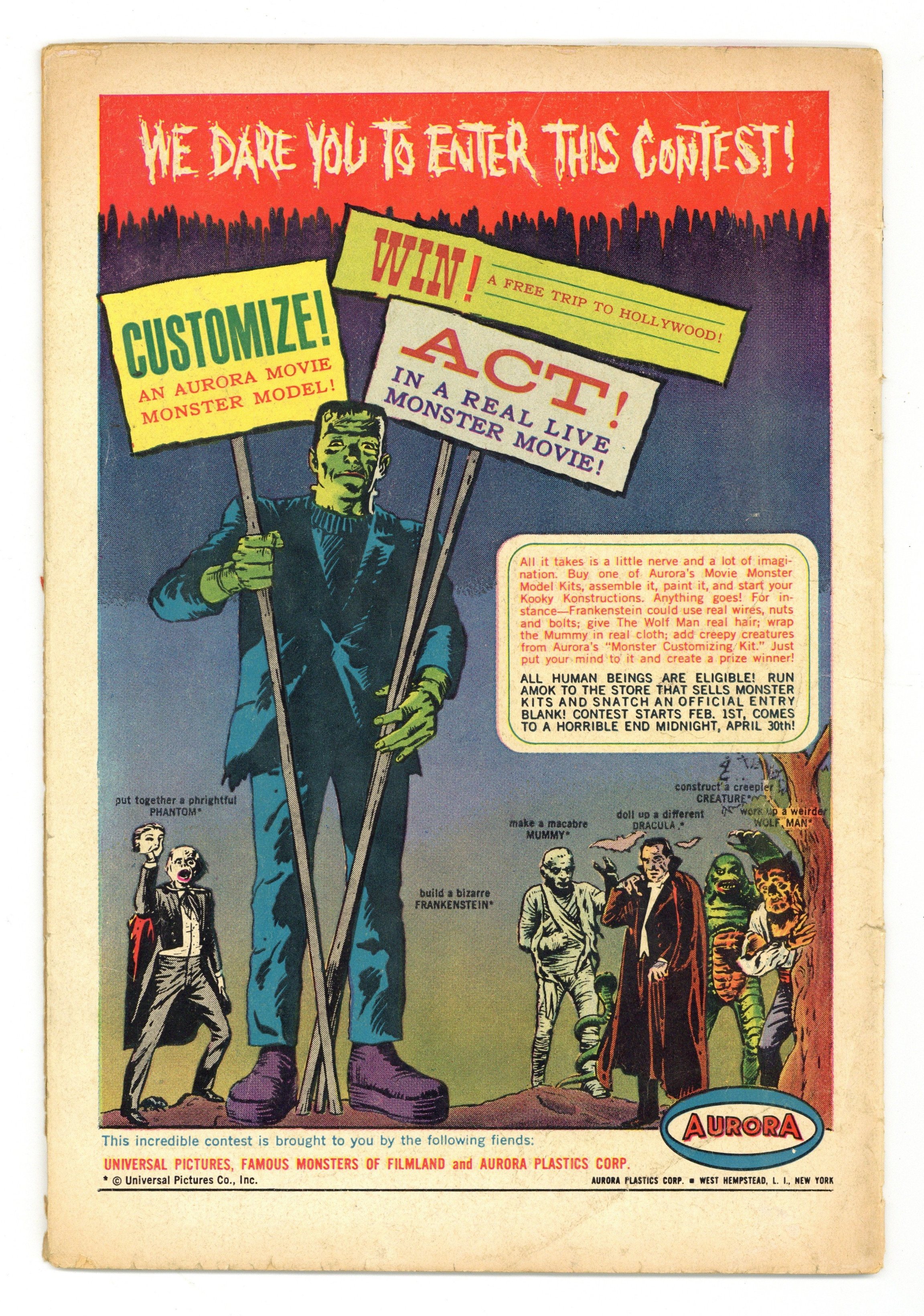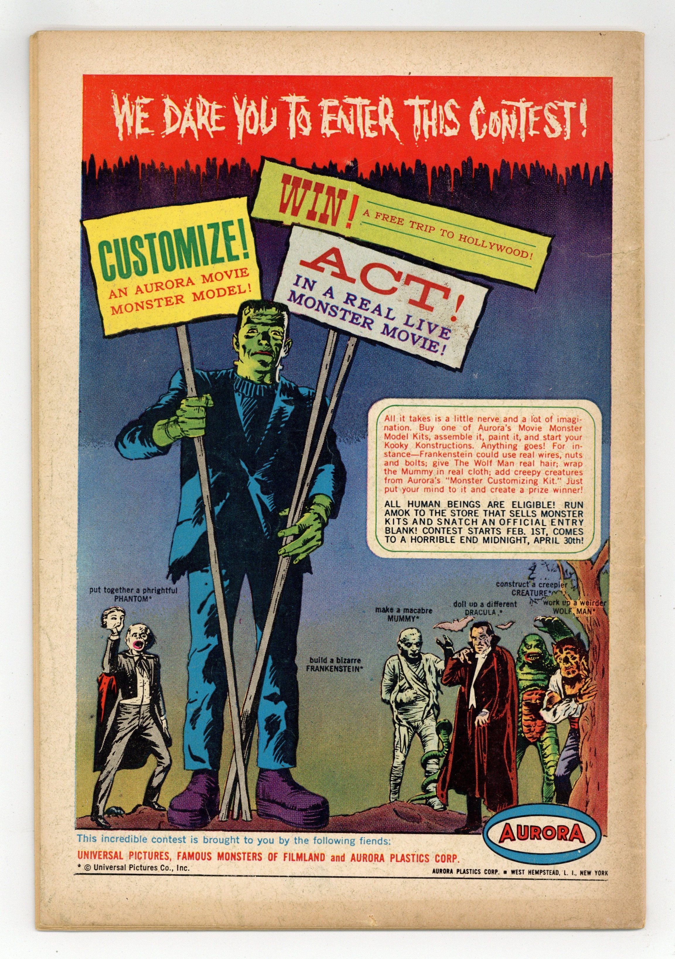 Cover art by Bob Brown. The Brotherhood of Evil (part 1), script by Arnold Drake, art by Bruno Premiani; The Doom Patrol create gifts for The Chief for his birthday. The Trail of the Terrible Titan (part 2), script by Arnold Drake, art by Bruno Premiani; Mr. Morden steals the giant robot Rog and attacks the Doom Patrol in an attempt to join the Brotherhood of Evil. A Medal for Go-Buggy 3!, script and art by Howard Purcell. 36 pgs. $0.12. Cover price $0.12.