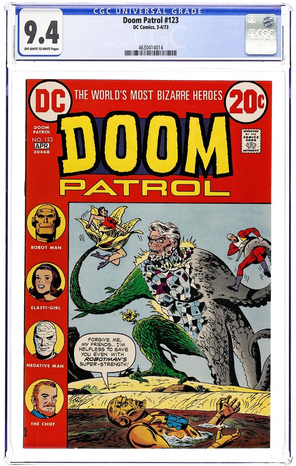 Reprints. Featuring: 8 page Doom Patrol story "Menace of the Turnabout Heroes" (part 1) starring the Doom Patrol [Robotman (Cliff Steele); Elasti-Girl; Negative Man; The Chief] and Animal-Vegetable-Mineral Man (villain), written by Arnold Drake and drawn by Bruno Premiani; 5 page Doom Patrol story "Return of the Animal-Vegetable-Mineral Man" (part 2) written by Drake and drawn by Premiani; 7 page Doom Patrol story "Deadline for the Doom Patrol" (part 3) written by Drake and drawn by Premiani; 1 page text article "The Men Behind...The Doom Patrol" by Allan Asherman. Cover by Bob Brown. Cover price $0.20.