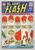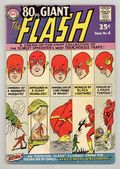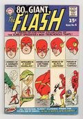 $28.50Flash reprints. Cover pencils by Carmine Infantino, inks by Murphy Anderson. "Around the World in 80 Minutes!", script by Robert Kanigher, pencils by Carmine Infantino, inks by Joe Giella; Police scientist Barry Allen invents a radio watch which picks up S.O.S. calls from many different countries, in order for him to avert these catastrophes, he must literally race around the world in eighty minutes. Ad for Green Lantern and Justice League of America. "Giants of the Time-World!", script by Robert Kanigher, pencils by Carmine Infantino, inks by Frank Giacoia; When Iris West disappears while on an assignment, The Flash follows her into another dimension. "The Master of Mirrors," script by John Broome, pencils by Carmine Infantino, inks by Joe Giella; Scudder, a small time criminal, discovers he can solidify images from his trick mirrors, he then uses this knowledge to commit crimes as The Mirror Master. "Nine Empty Uniforms!", script by Robert Kanigher, pencils by Carmine Infantino, inks by Frank Giacoia; Jay Garrick and The Flash help aging baseball team, The Bobtails, regain their confidence. Flash's Rogues' Gallery illustration, pencils by Carmine Infantino, inks by Murphy Anderson. "The Challenge of the Weather Wizard!", script by John Broome, pencils by Carmine Infantino, inks by Murphy Anderson; Escaped criminal Mark Mardon reaches his brother Clyde's house to lie low, however, on entering finds his brother dead. Detective Comics/Batman ad. "The Day Flash Weighed 1000 Pounds!", script by John Broome, pencils by Carmine Infantino, inks by Joe Giella; Grodd, the Super-Gorilla has seemingly died in Gorilla City, in reality he has found a way to take over the mind of a human being (William Dawson); As Dawson, he invents a gun which causes The Flash to absorb vast amounts of moisture from the air, bulking him up to 1000 pounds in weight. The Flash ad. Pinup of Barry ("Flash") Allen, Jay ("Flash") Garrick, and Wally ("Kid Flash") West, pencils by Carmine Infantino, inks by Murphy Anderson. 84 pgs., full color. Cover price $0.25.