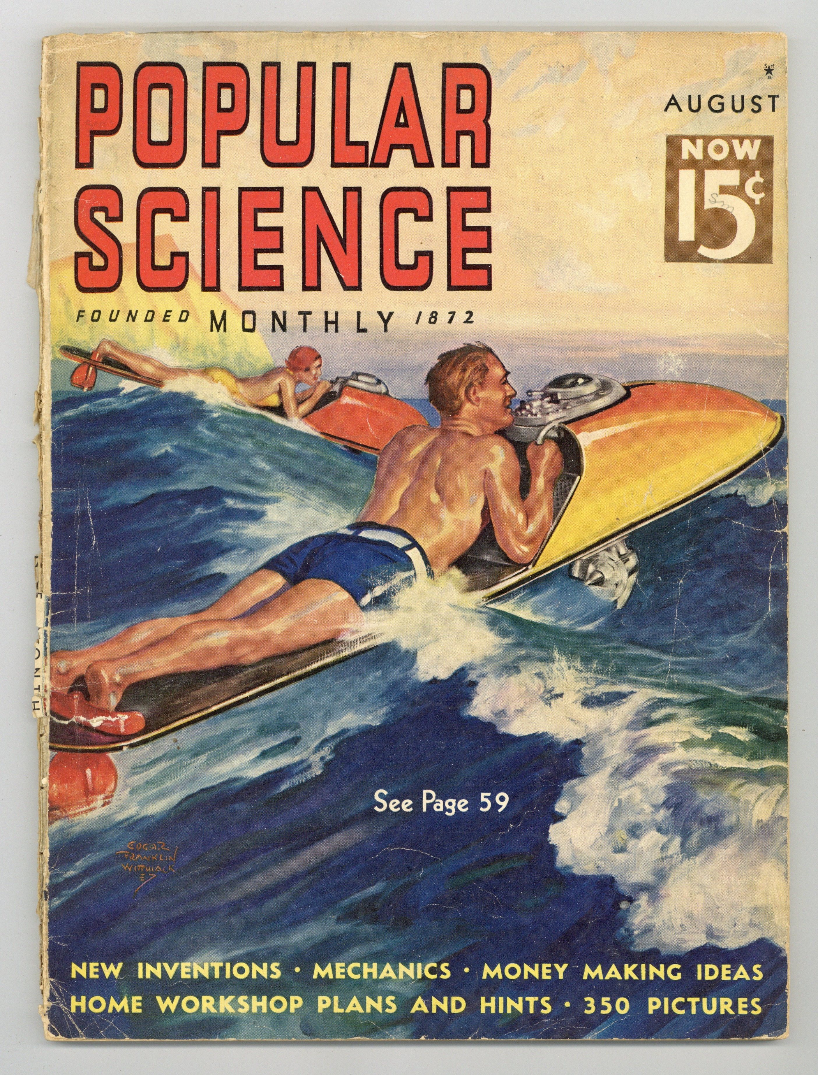 Volume 131, Issue 2 - August, 1938. "Marvels of Underground Oil Railroads", fluid freight flows through a vast network of pipelines. "Why We Enjoy Pain", modern psychology traces common habits to mild forms of self-torture. "Fire-Bug Hunters", how arson sleuths make war on incendiaries. "Musical Magician", a college professor coaxes tunes from odd materials, plus much more. 8.5-in. x 11.5-in., black and white w/spot color, 126 pages. Cover price $0.15.