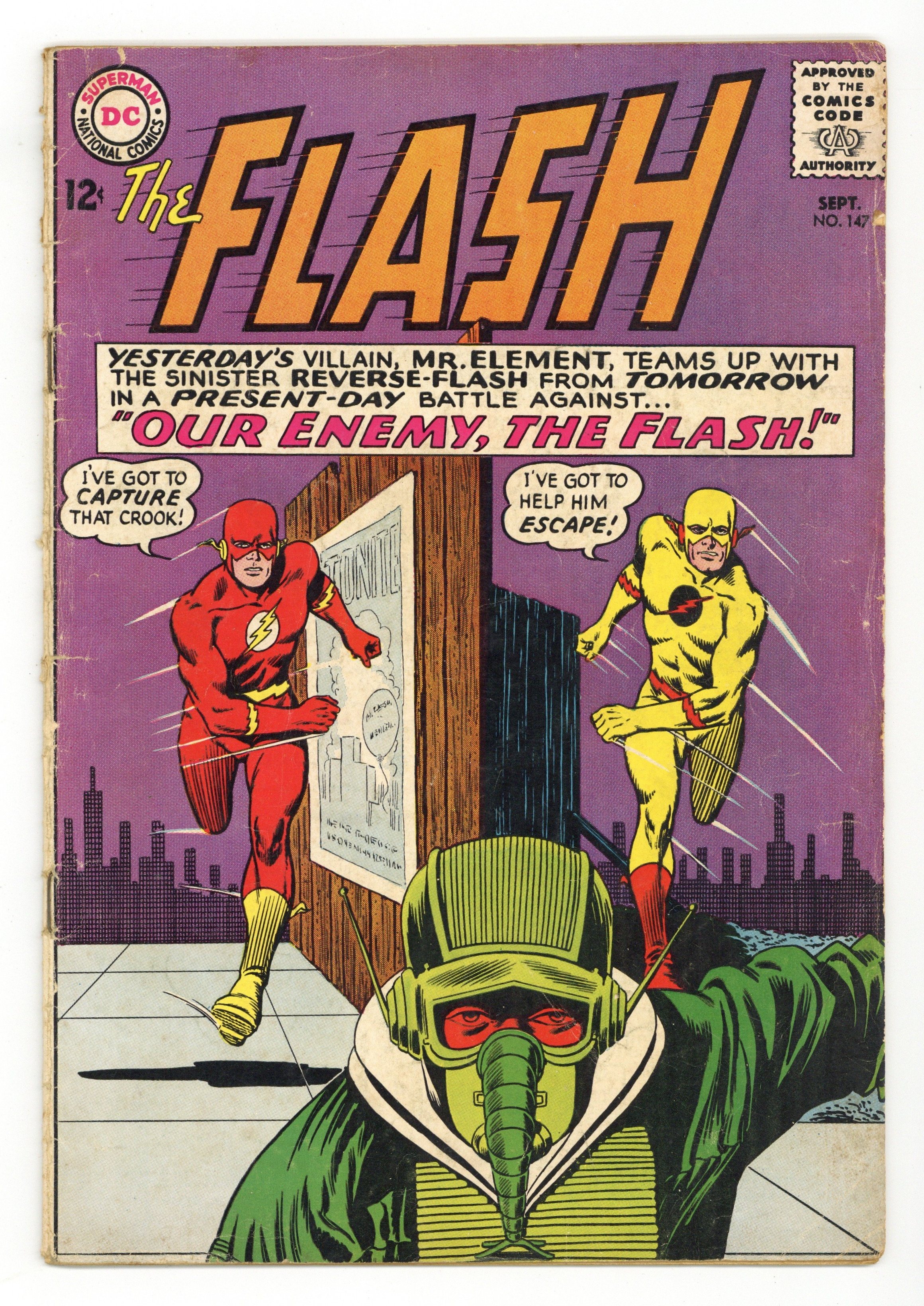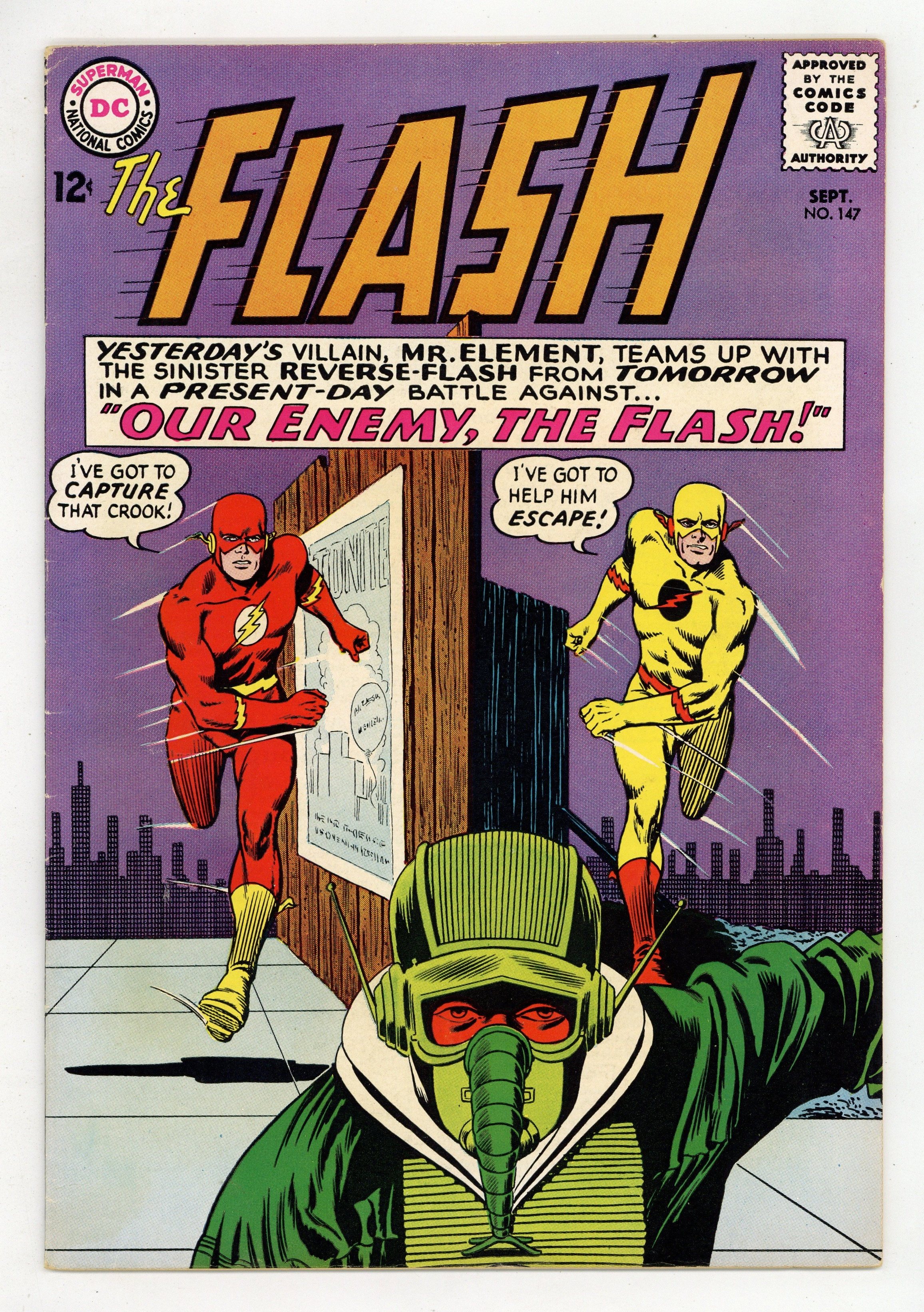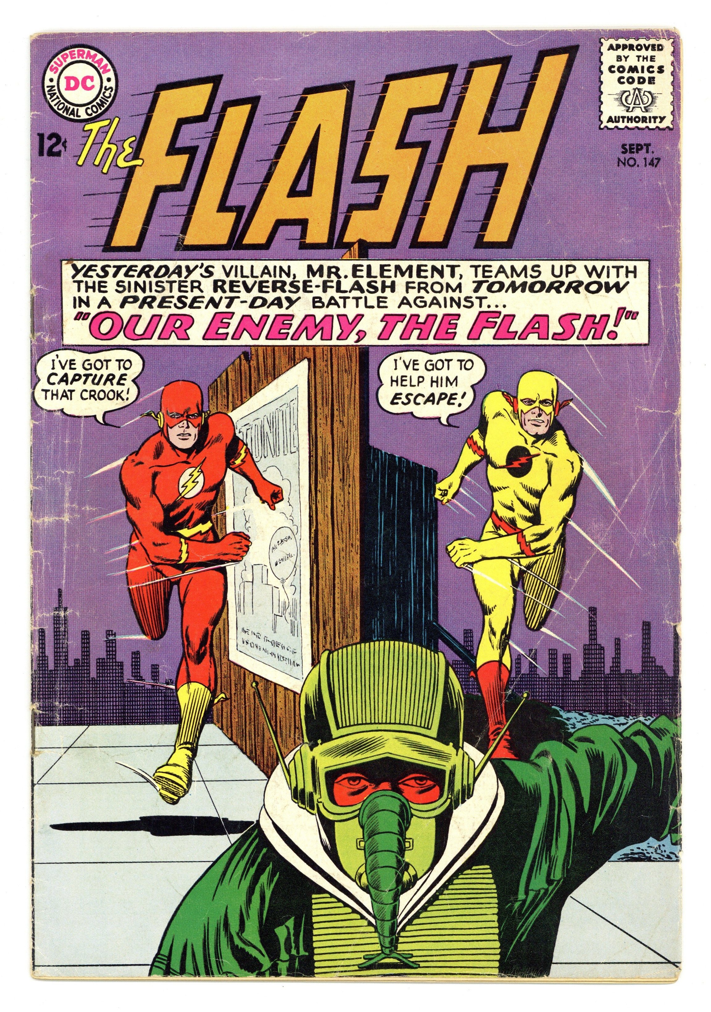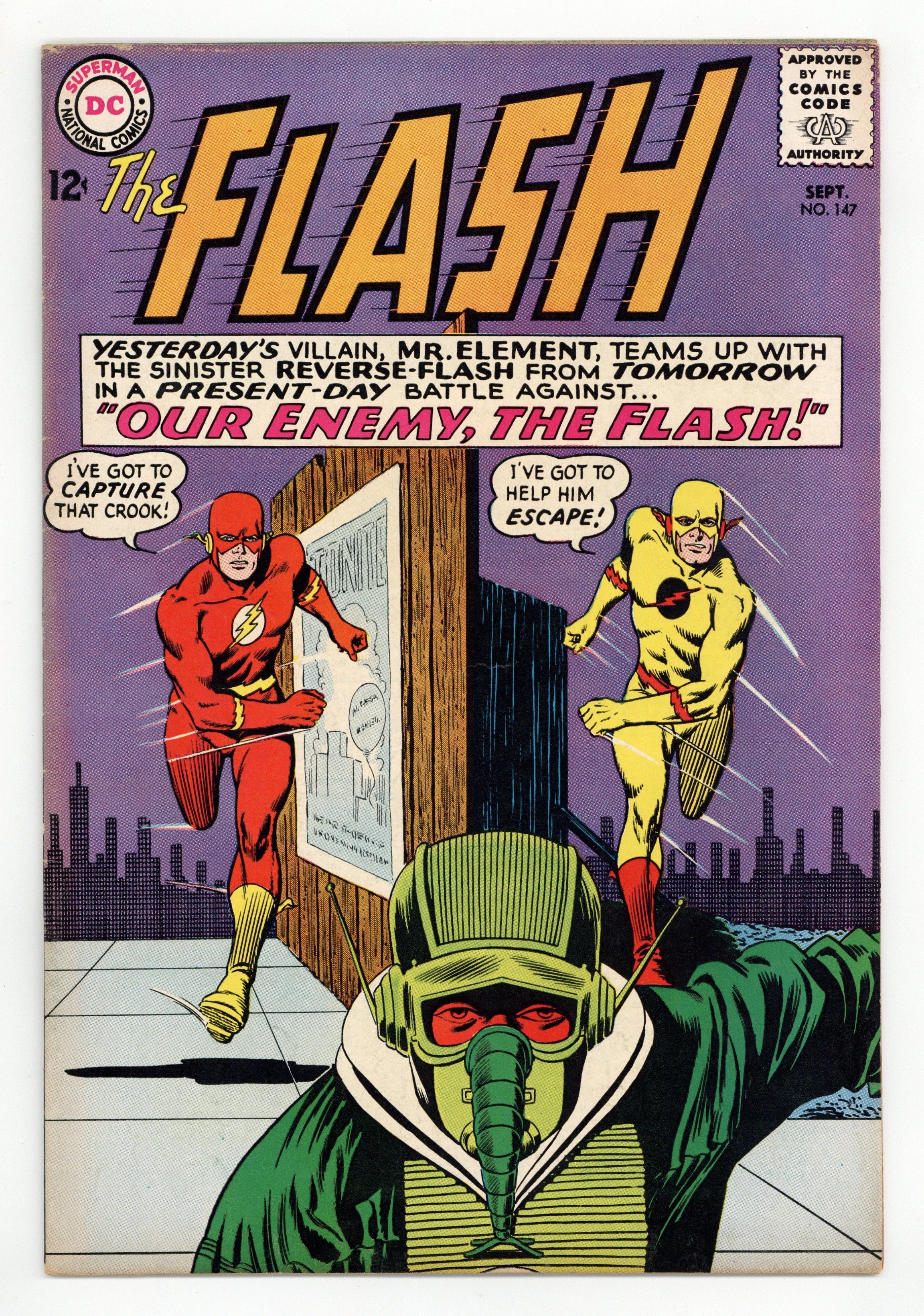 Cover pencils by Carmine Infantino, inks by Murphy Anderson; cover similar to the classic cover for #123. Our Enemy, The Flash, script by John Broome, pencils by Carmine Infantino, inks by Joe Giella; Reverse Flash (aka Professor Zoom) teams up with Mr. Element. Rocky and Bullwinkle star in a one-page Cheerios ad. Palisades Amusement Park ad with Superman. Trix cereal ad. Star names fact half-page. Lucky Charms ad. 36 Pages, Full Color. Cover price $0.12.
