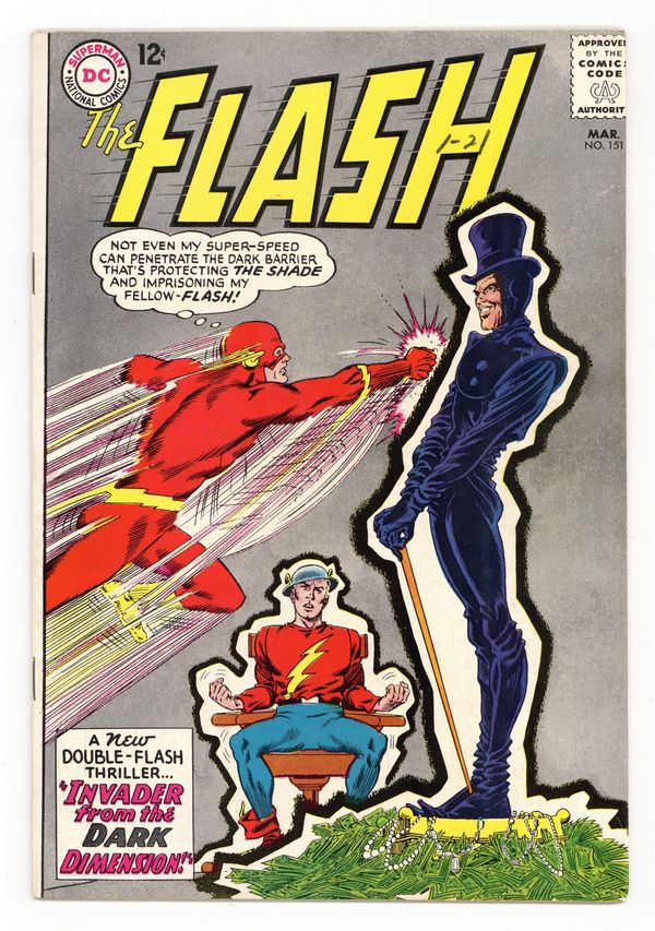 Cover pencils by Carmine Infantino, inks by Murphy Anderson. Invader From the Dark Dimension, script by Gardner Fox, pencils by Carmine Infantino, inks by Joe Giella; Barry "Flash" Allen and Jay Garrick (the Flash of Earth 2) battle The Shade. GI Joe toy ad. 80 pg. Giant More Secret Origins ad. Astroforce Space Soldiers toy ad. What's the Difference Between Dumb and Mute public service announcement, script by Julius Schwartz, pencils by Morris Waldinger, inks by Tom Nicolosi. Ed Big Daddy Roth custom finishes ad. Letter from noted letter hack Guy H. Lillian III. Flash subscription ad. 36 Pages, Full Color. Cover price $0.12.