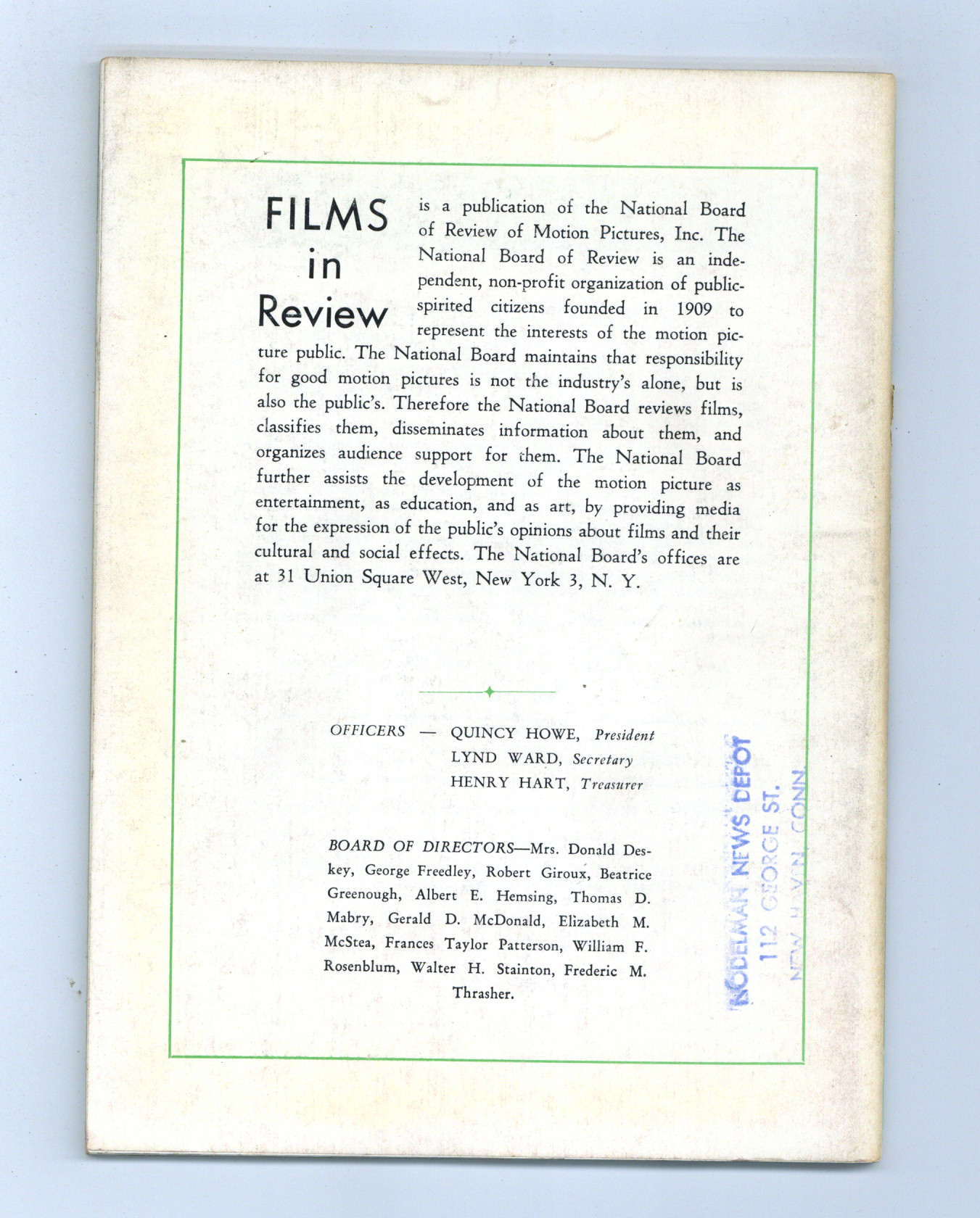 Published Apr 1962 by National Board of Review of Motion Pictures Inc..$5.40- Staple rust: Slight.