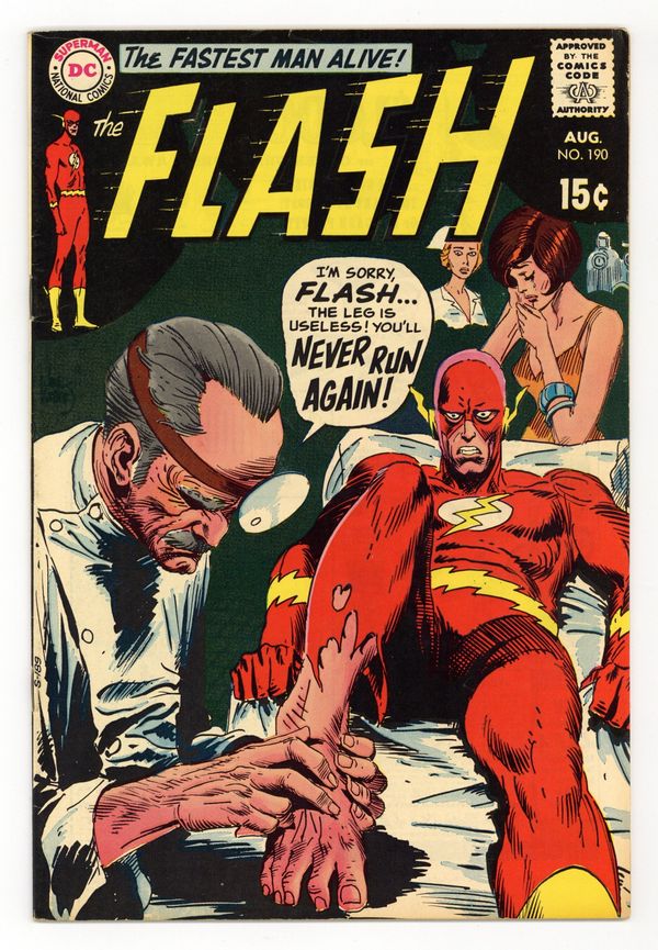 First 15-cent issue. Cover art by Joe Kubert. Super-Speed Agent of the Flash, script by John Broome, pencils by Ross Andru, inks by Mike Esposito; Flash saves a trailer park from being wiped out by a tornado, but breaks his leg in the process. Ten Years to Live--One Second to Die!, script by John Broome, pencils by Ross Andru, inks by Mike Esposito; Flash, recovered from his leg injury visits Dexter Miles at the Flash Museum; he learns that Dexters assistant Joel has been impersonating Flash. Movie monsters Aurora model kit ad. Palisades Amusement Park ad with Batman, Superman, and Wonder Woman. Letter from the editors explaining the reason for the 3-cent cover price hike. 36 Pages, Full Color. Cover price $0.15.