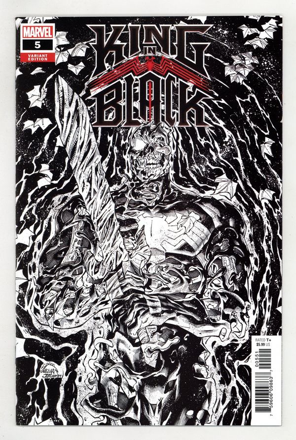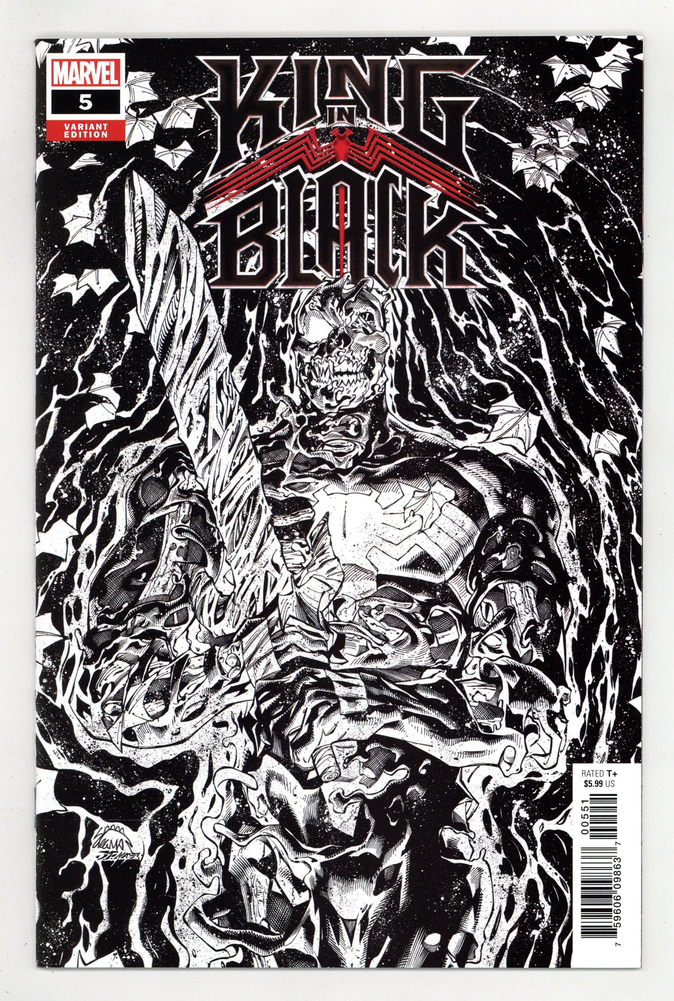 Tags: King in Black (part 5)$100.00Limited 1 for 500 Retailer Incentive Variant Cover. Written by Donny Cates. Art and Cover by Ryan Stegman and JP Mayer. WHAT'S A GOD TO A NONBELIEVER? 48 pages, full color. Rated T+ Cover price $5.99.